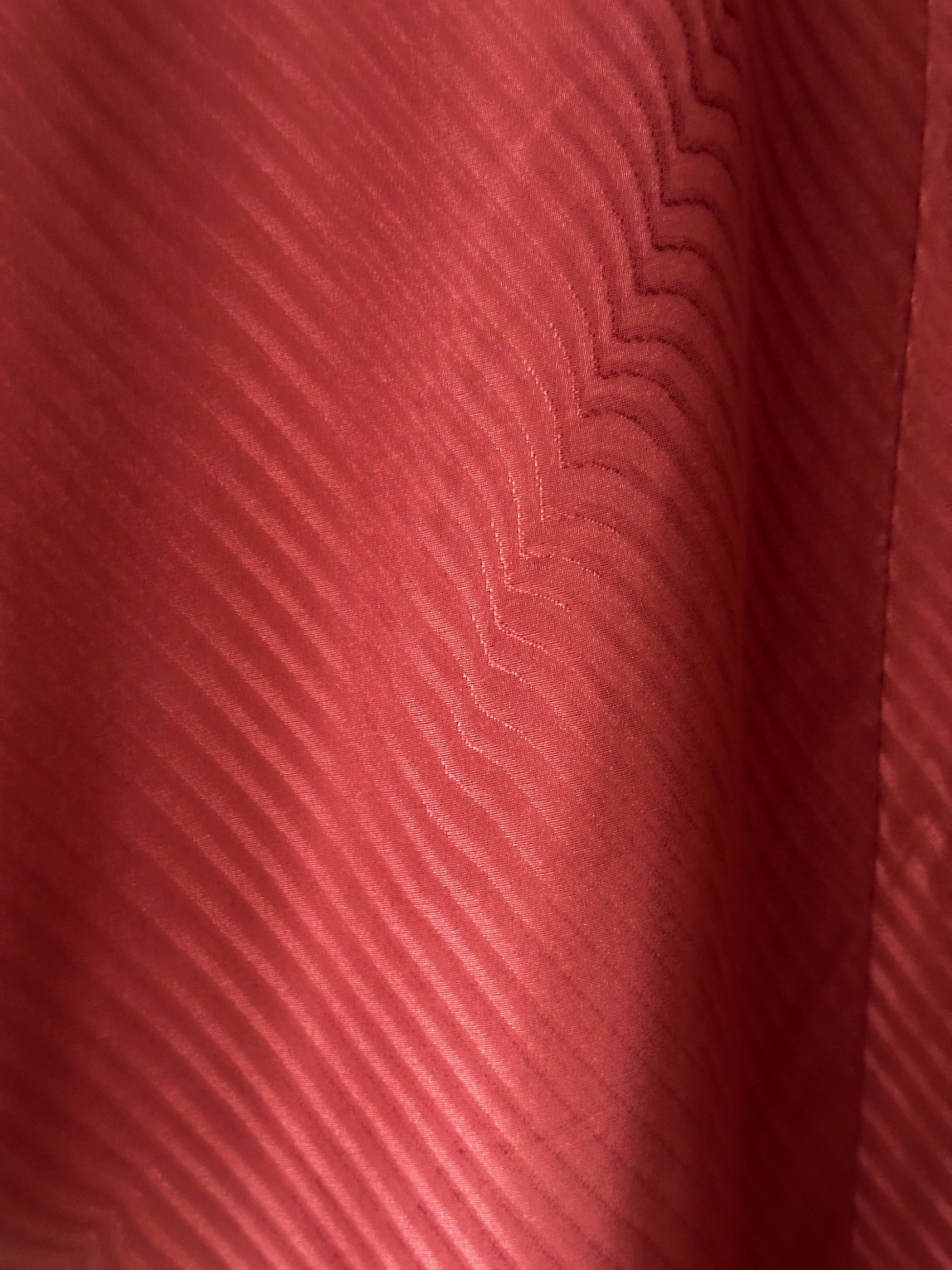 Kangas: Valmistettu korkealaatuisesta rinzu-silkistä , ja siinä on hienovarainen kudottu kuvio, joka parantaa sen ylellistä tuntua. Sisävuori on valkoinen, mikä tarjoaa puhtaan ja klassisen kontrastin ulkoväriin.