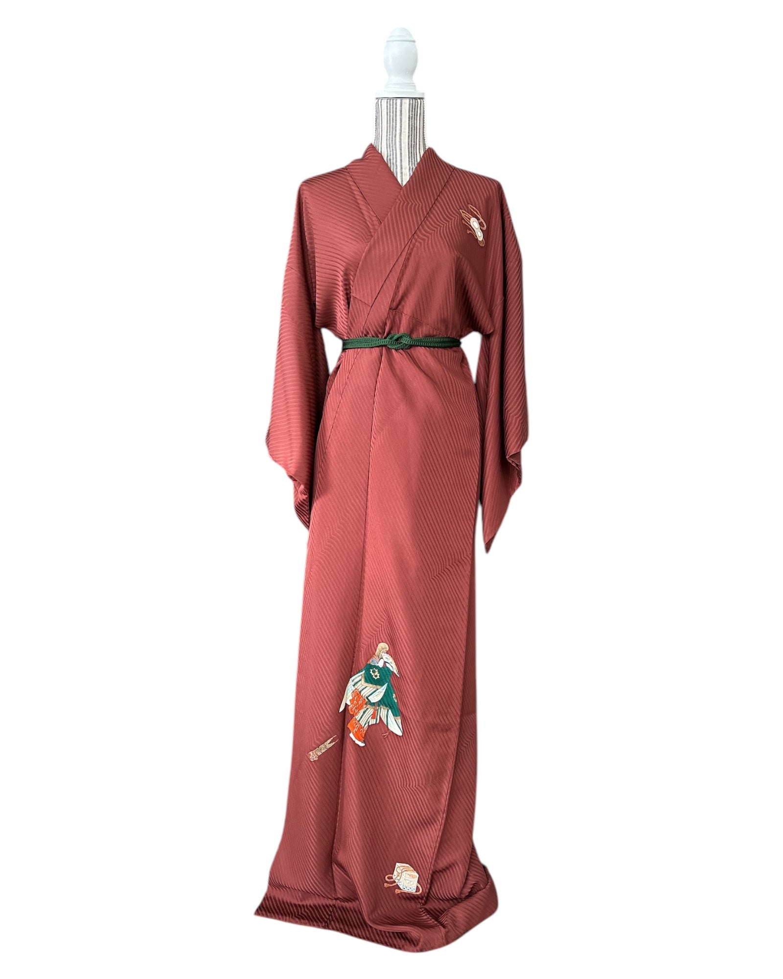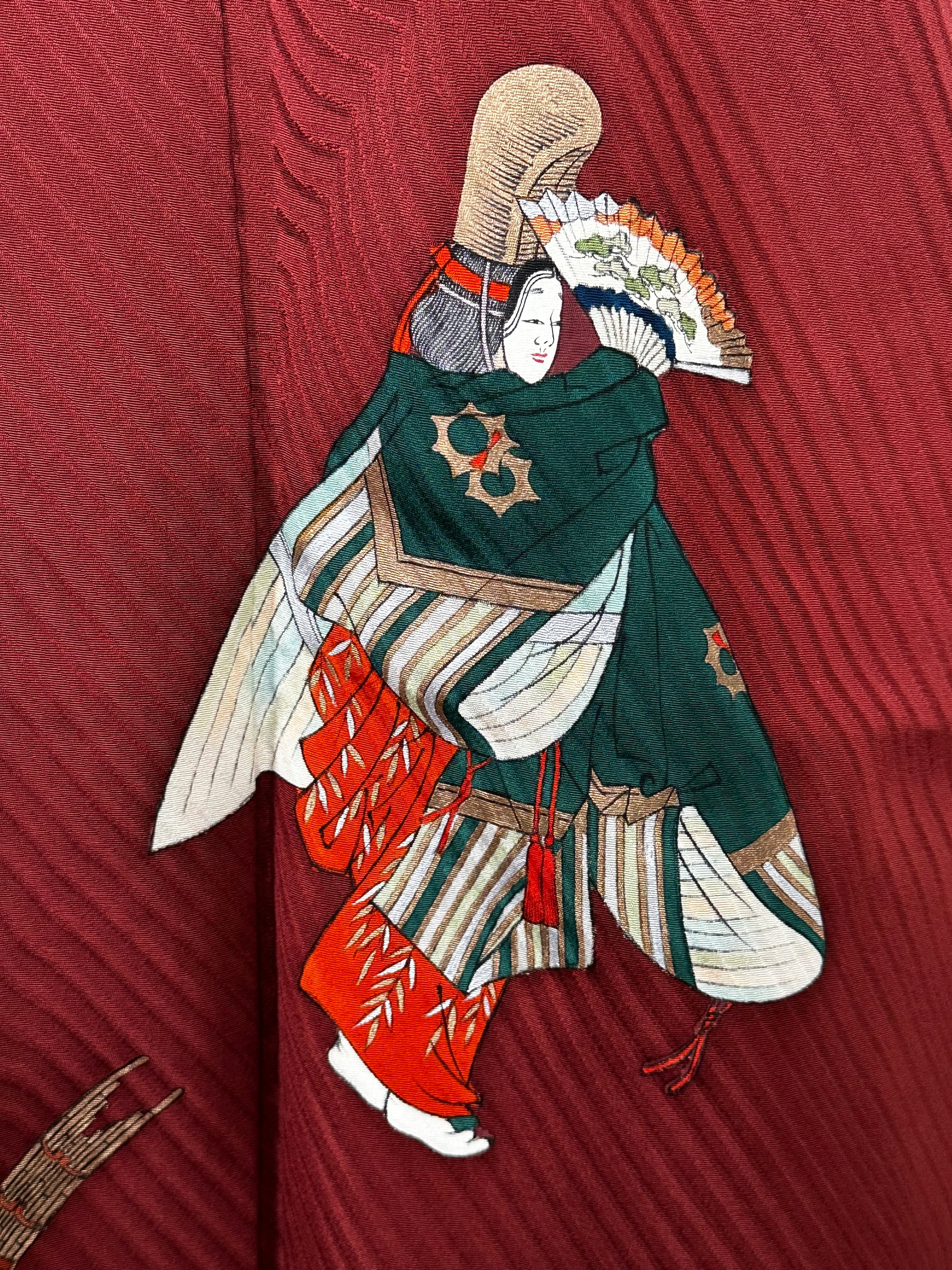 Kunto : Tämä kimono on hyvässä kunnossa , hyvin säilynyt kangas ja taideteoksia. Värit pysyvät täyteläisinä, ja silkki säilyttää laatunsa, mikä tekee siitä arvokkaan pukeutumiseen tai keräilyyn.