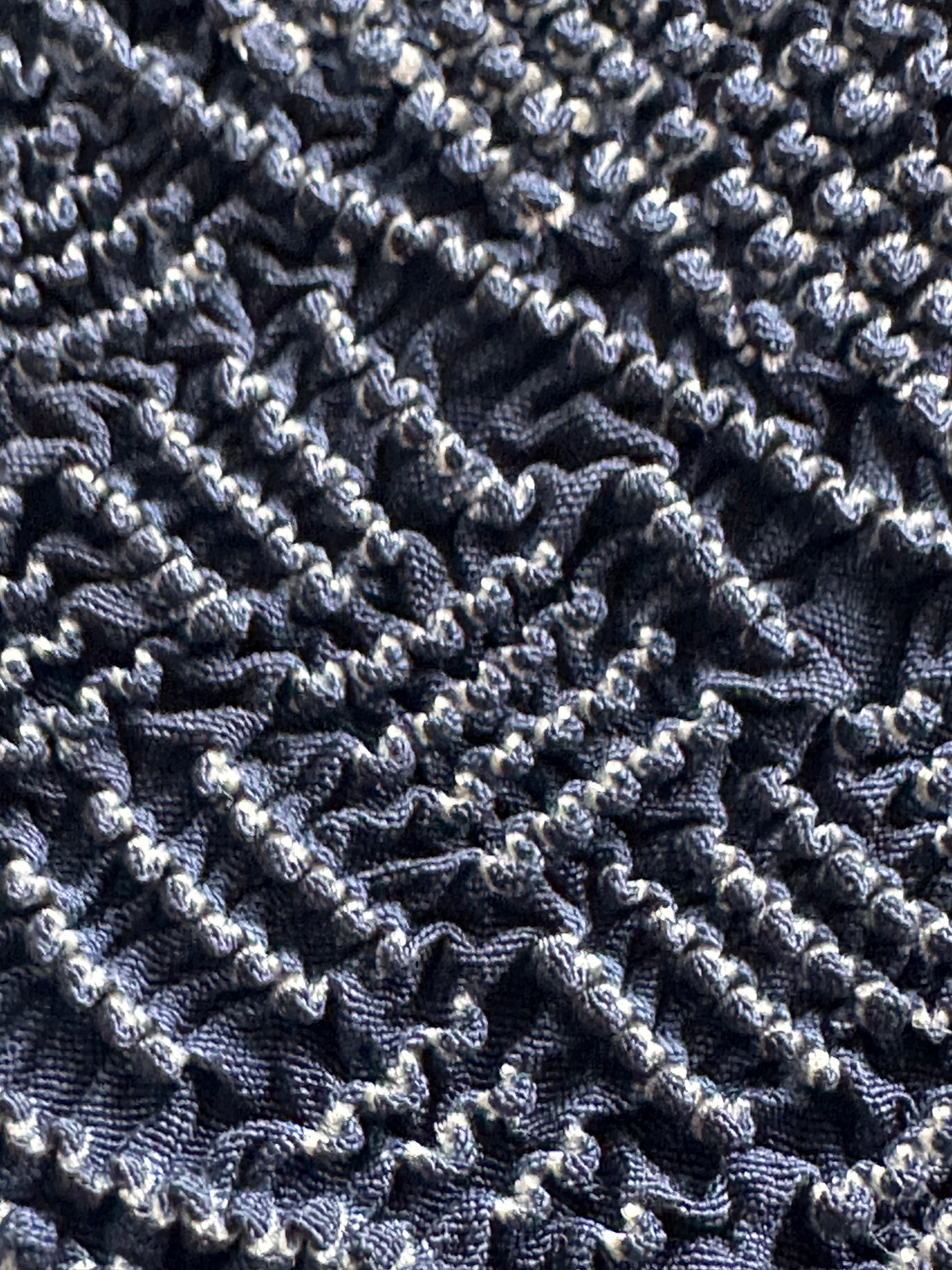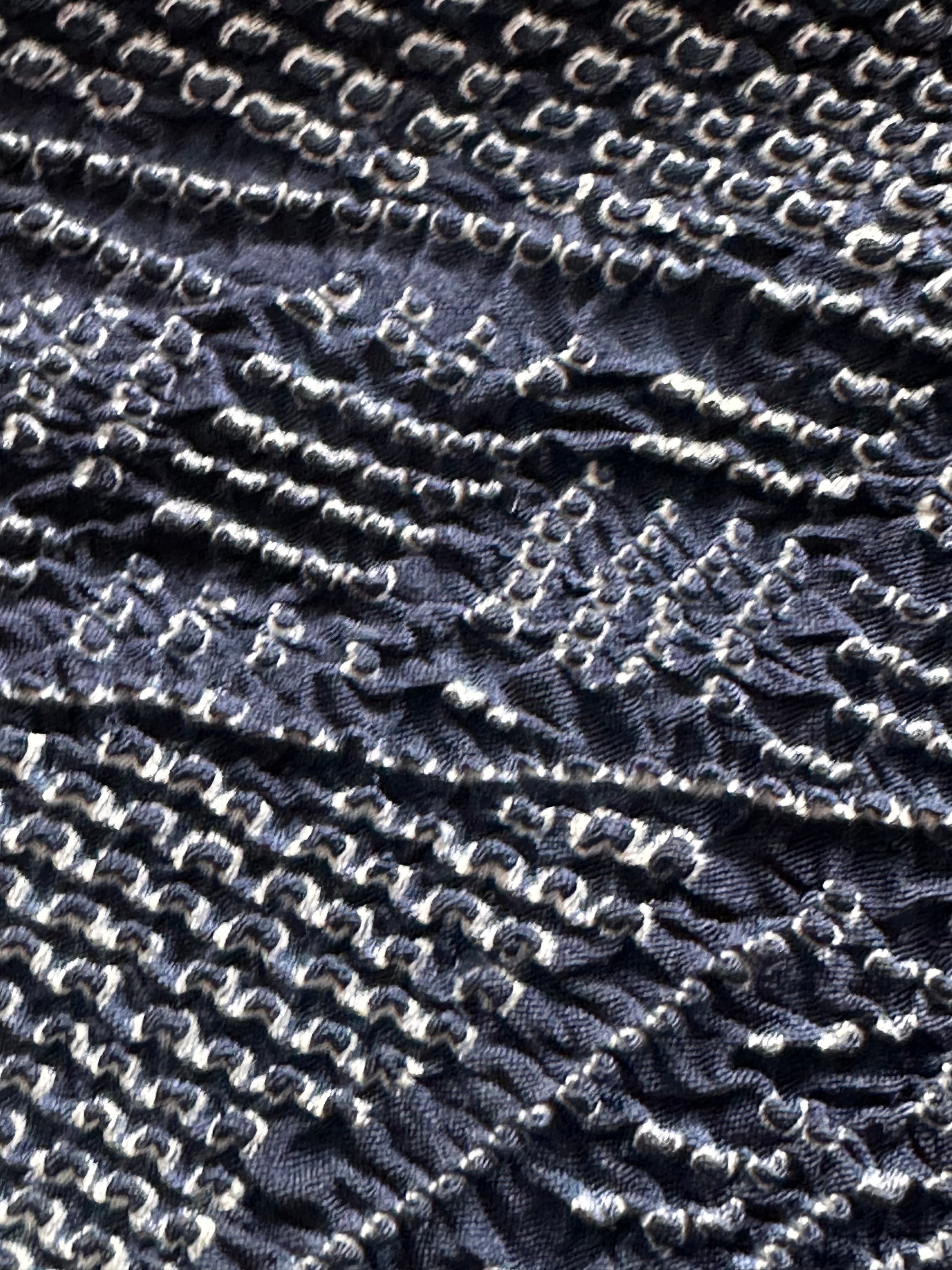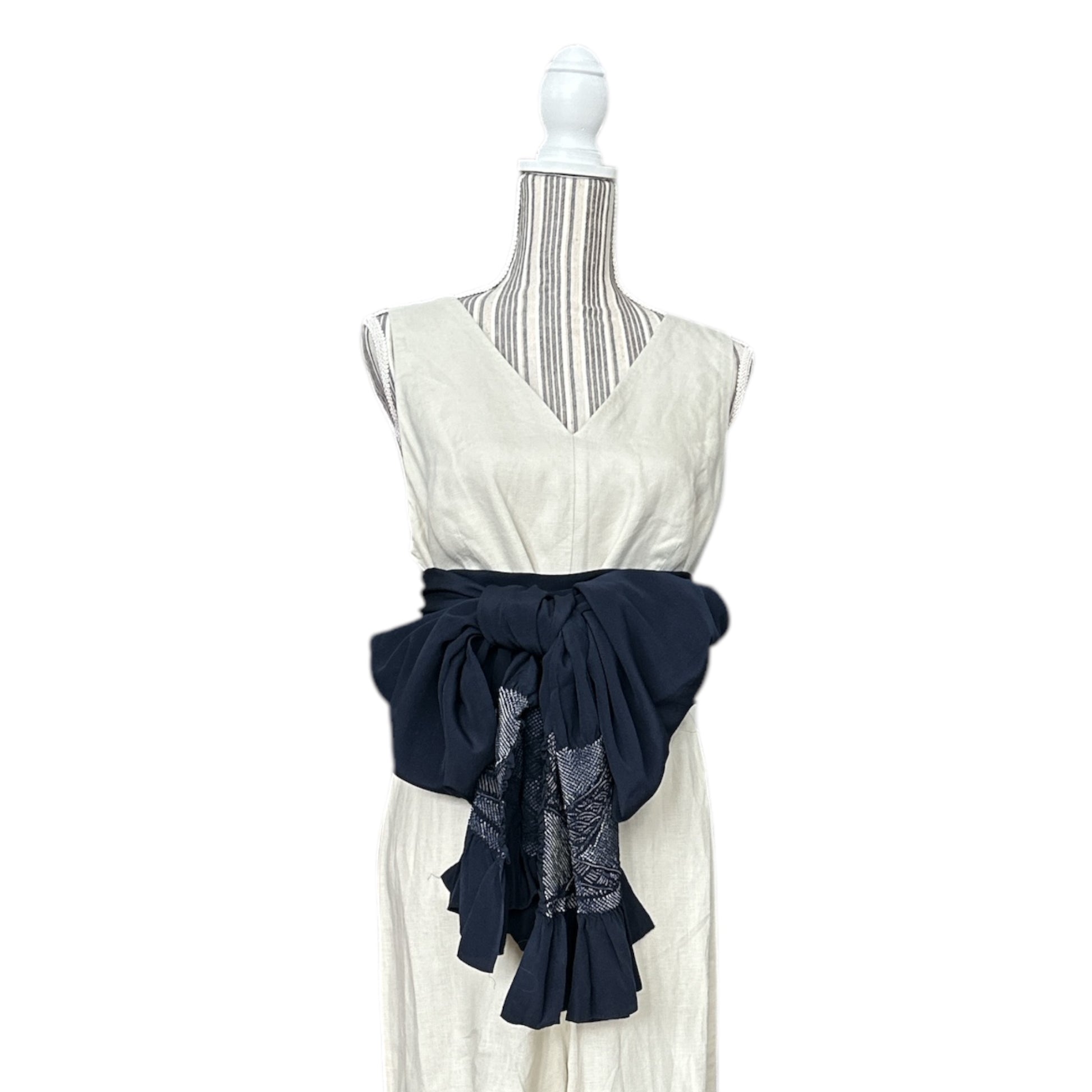 Tyyli: Perinteinen laivastonsininen Heko Obi , jossa on shibori-yksityiskohtia. Sopii juhlapukeutumiseen tai moderniksi asusteeksi, joka luo rennon ja tyylikkäämmän ilmeen.