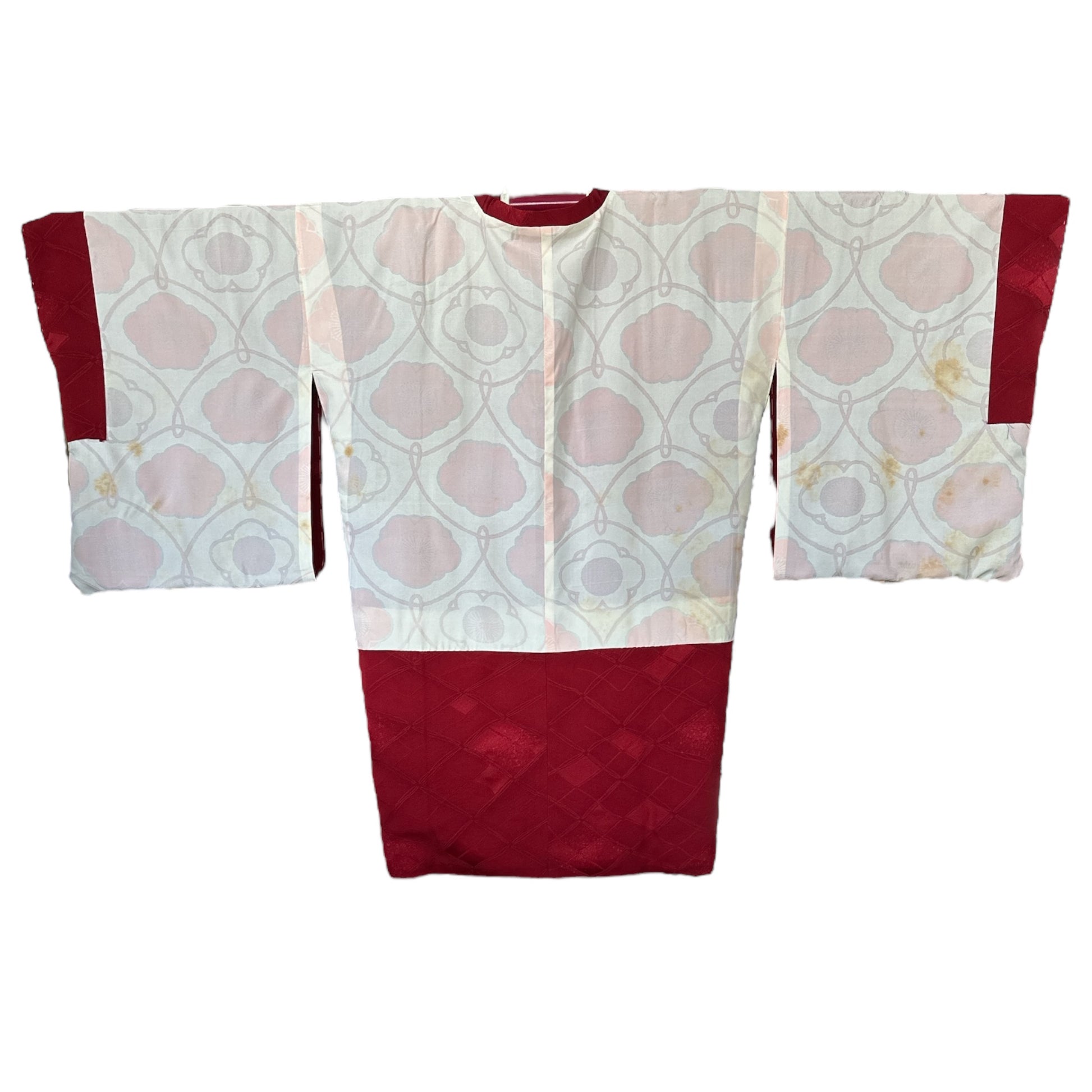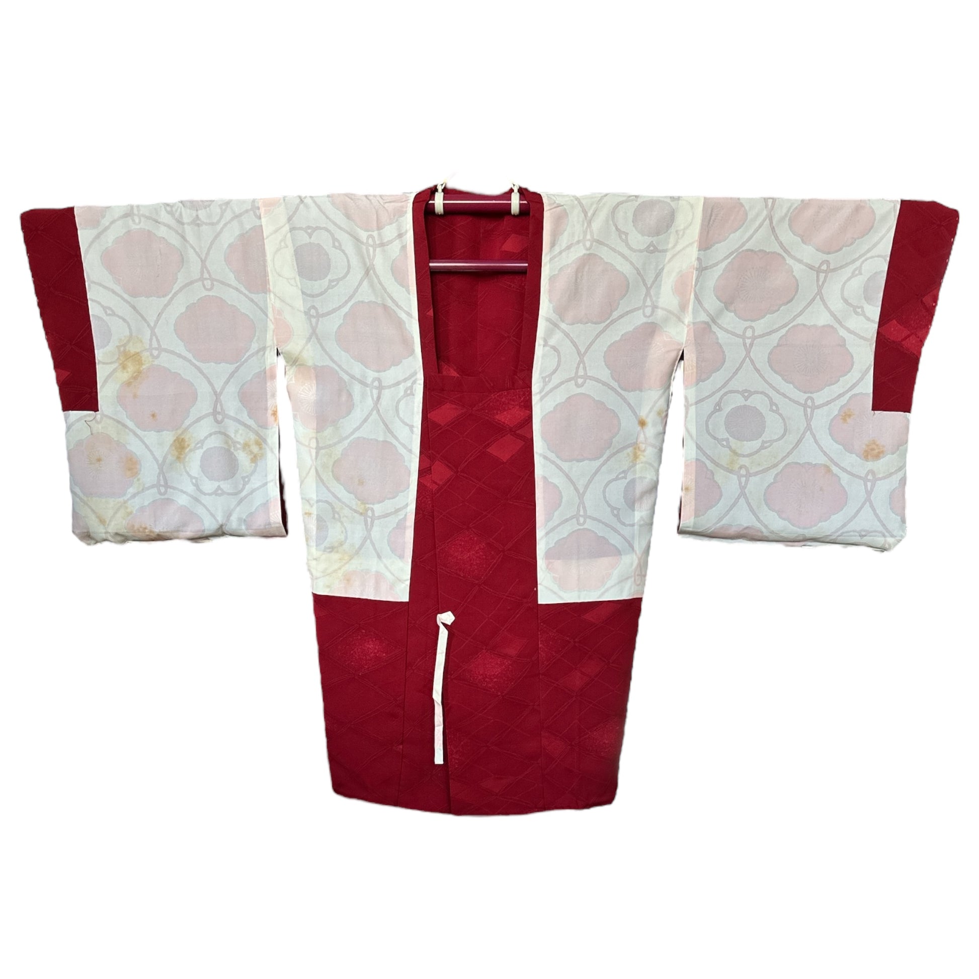 Kunto: Michiyuki on edelleen hyvässä yleiskunnossa. Sisävuorauksessa on joitain näkyviä iän jälkiä , jotka ovat seurausta pitkäaikaisesta varastoinnista ja kosteudelle altistumisesta. Nämä merkit eivät näy ulkopuolelta eivätkä vaikuta vaatteen yleisulkonäköön tai käytettävyyteen. Kappale on huolellisesti puhdistettu ja valmis käyttöön.
