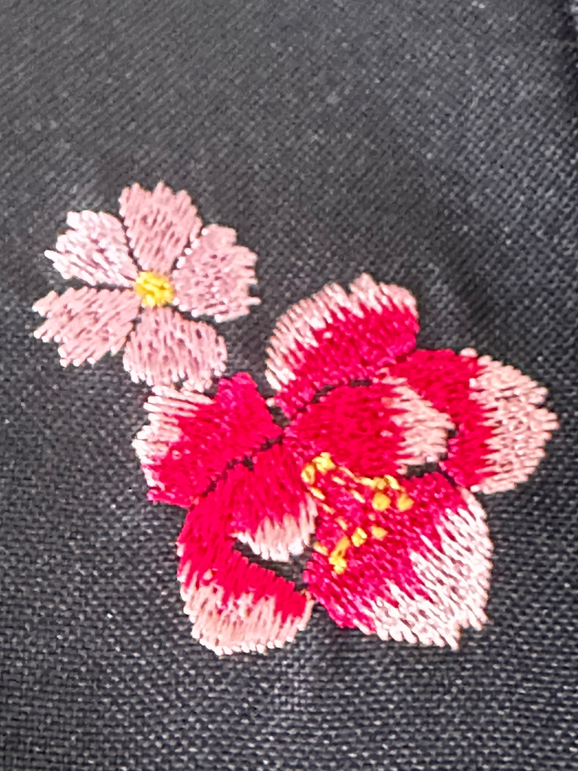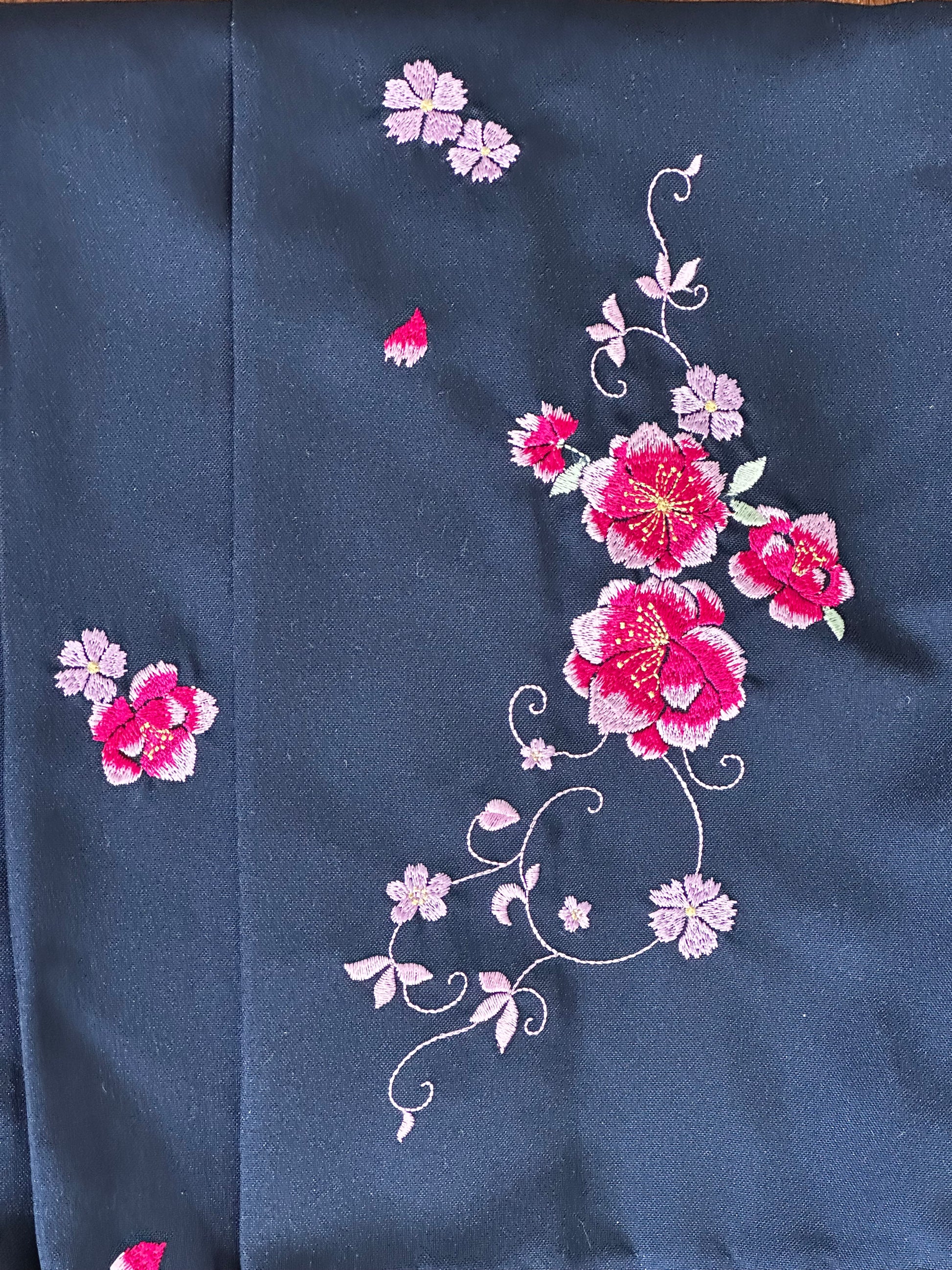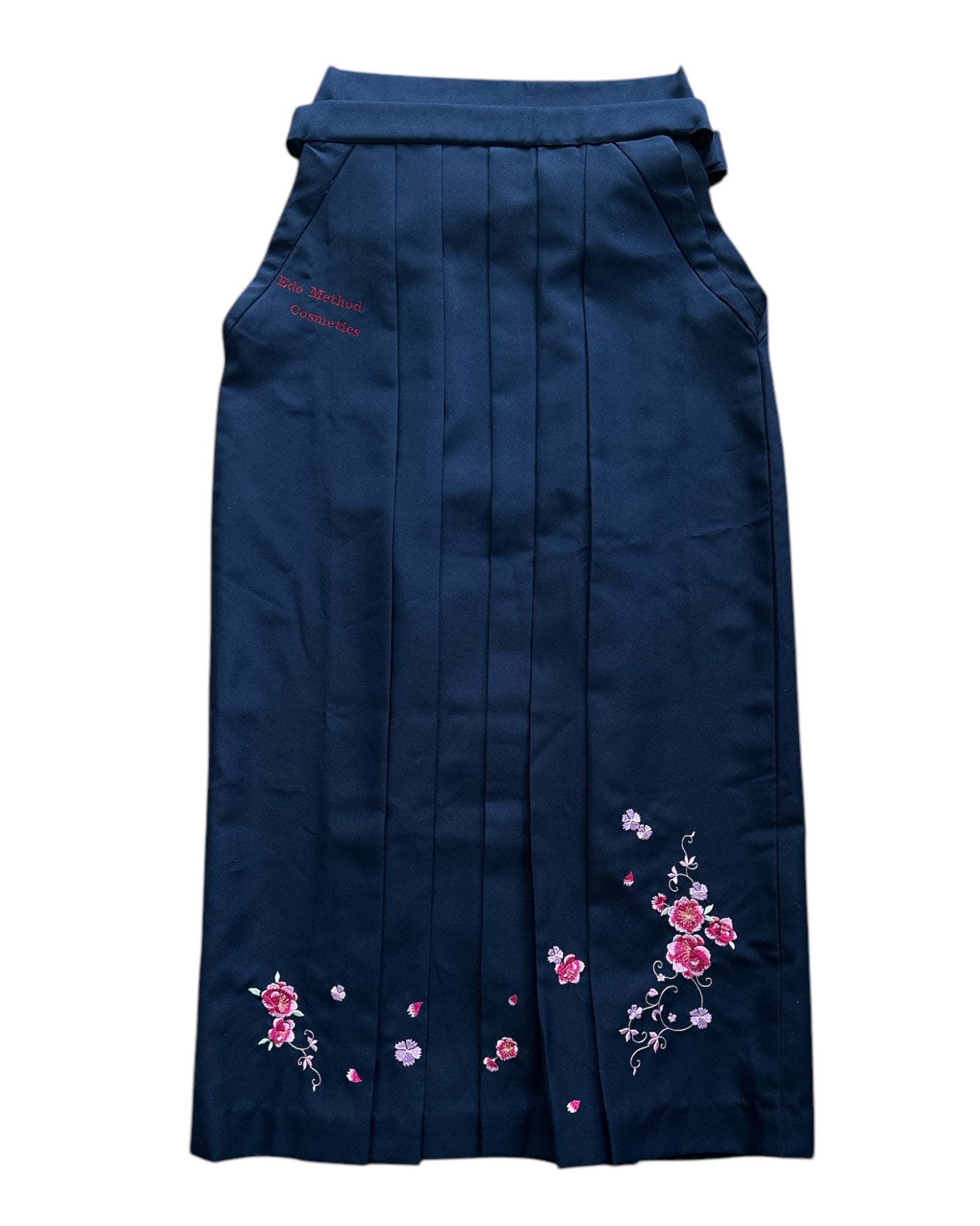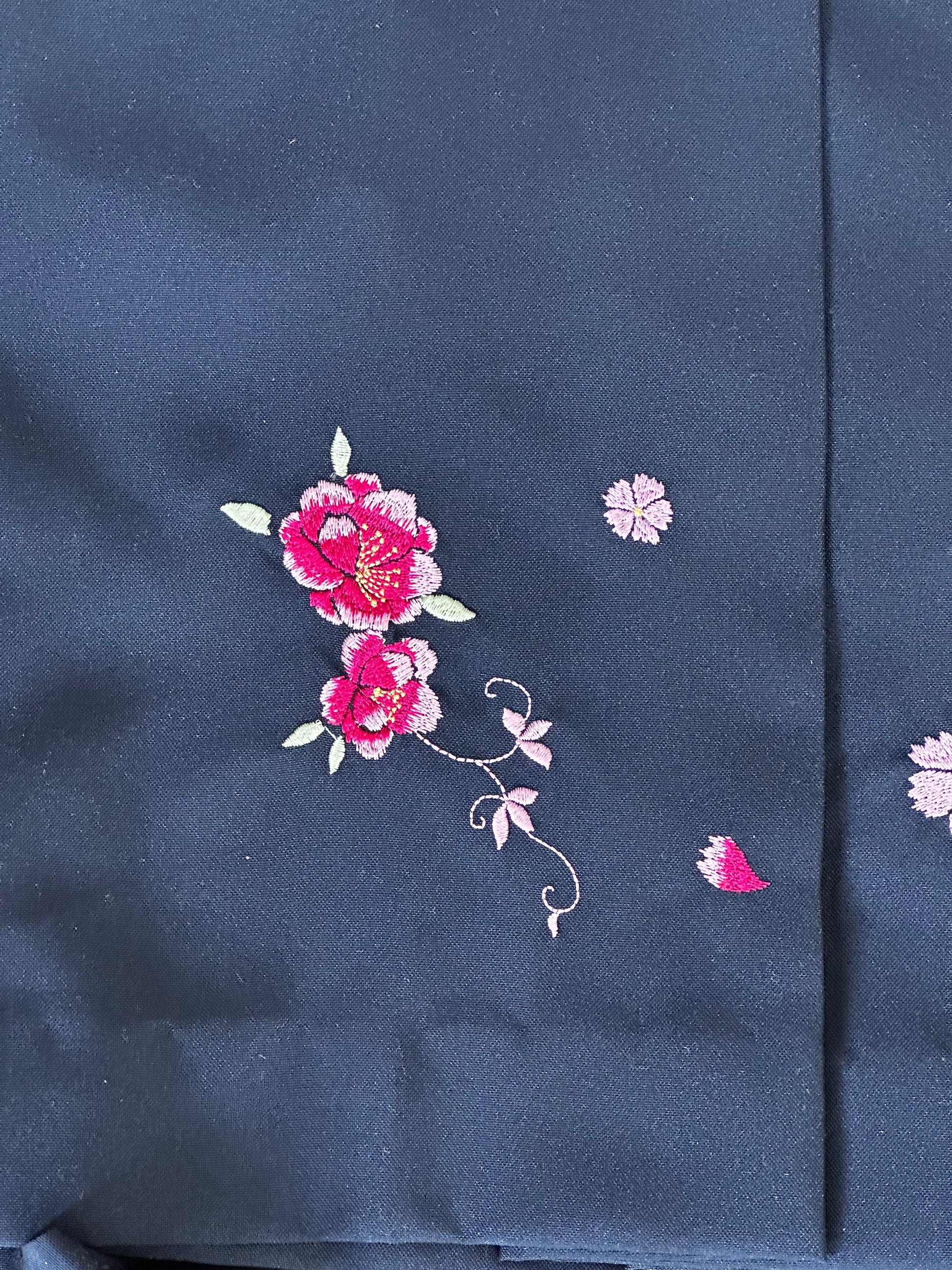 Kuvaus: Tämä tyylikäs naisten hakama on valmistettu korkealaatuisesta synteettisestä silkistä, ja se tarjoaa sileän, hienostuneen rakenteen ja siro verhouksen. Syvä tummansininen pohja tarjoaa hienostuneen taustan, kun taas herkkä kirjonta helmassa lisää ripauksen kauneutta ja perinteitä. Kukkakuviossa on kirsikankukkia pehmeän vaaleanpunaisena ja punertavana sävyjä luoden upean kontrastin laivastonsinistä kangasta vasten.
