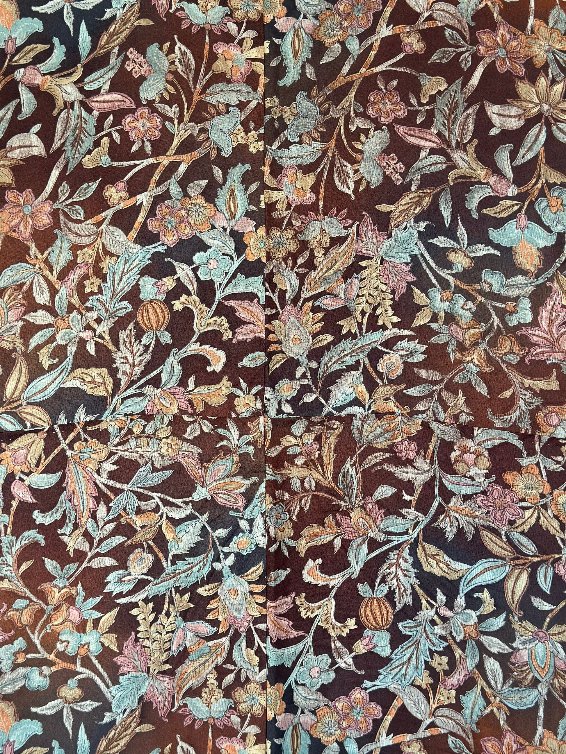 Kuvaus: Tämä naisten kimono huokuu boheemi viehätysvoimaa , ja siinä on täyteläinen ruskea-tumma kastanjanruskea pohjaväri, kauniisti koristeltu monimutkaisilla kukka-aiheilla ja herkillä kasvitieteellisillä elementeillä , jotka luovat harmonisen, luonnon inspiroiman muotoilun. Lämpimien sävyjen ja pehmeiden yksityiskohtien yhdistelmä antaa kimonolle vapaahenkinen mutta hienostuneen estetiikan.