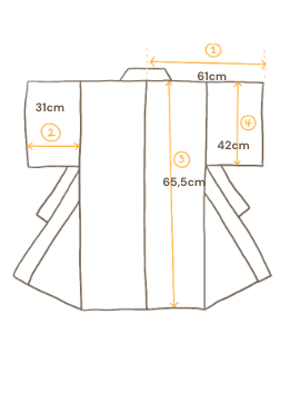 Perinteisellä haori himolla (koristeellisilla kiinnitysnauhoilla) viimeistelty vaate säilyttää autenttisen siluettinsa ja klassisen käyttökelpoisuutensa.