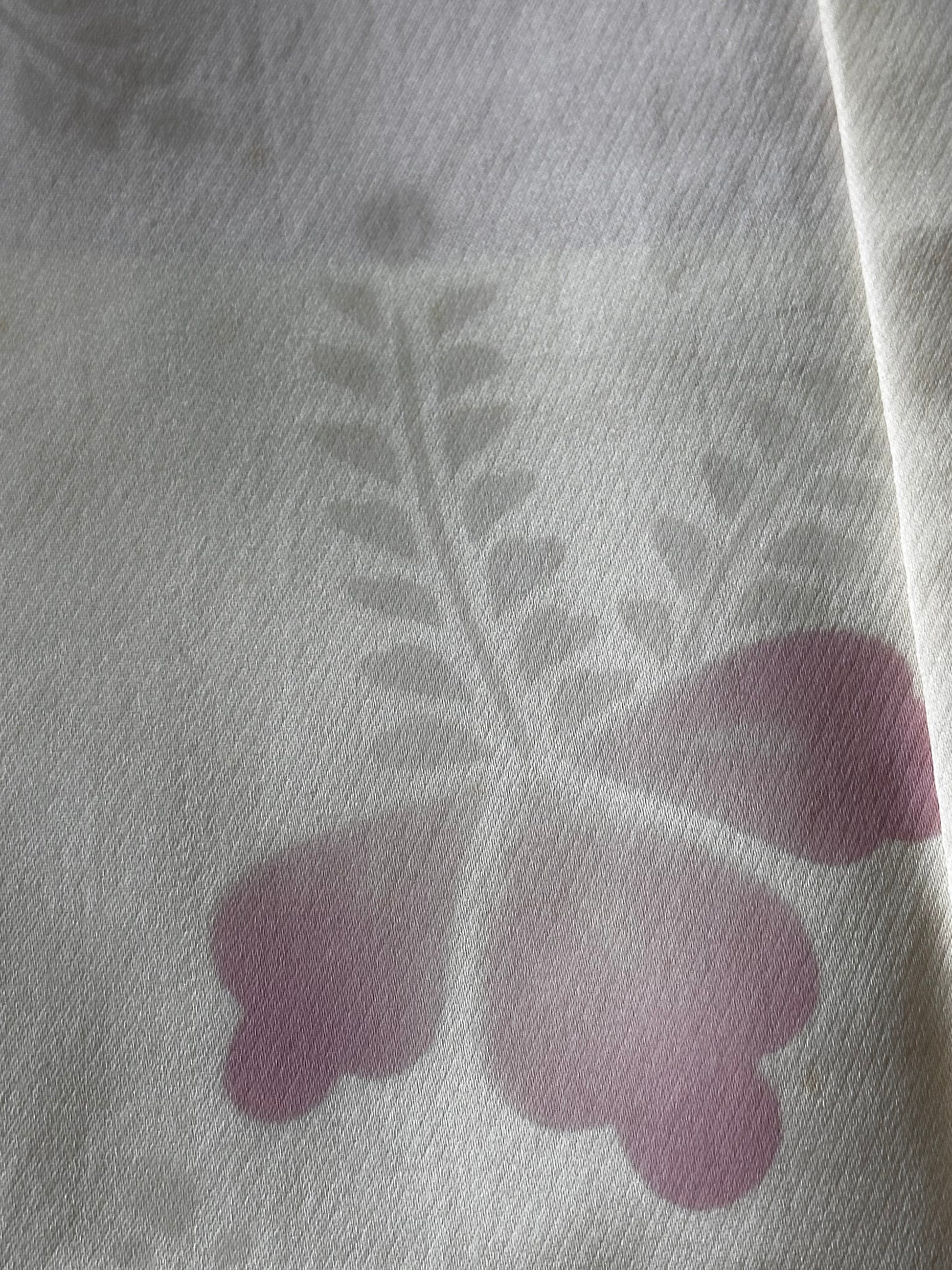 Fabric: Crafted from feather-light silk, the material is incredibly soft to the touch and drapes with natural grace. The subtle woven motif adds depth while maintaining a minimalist, graceful look.