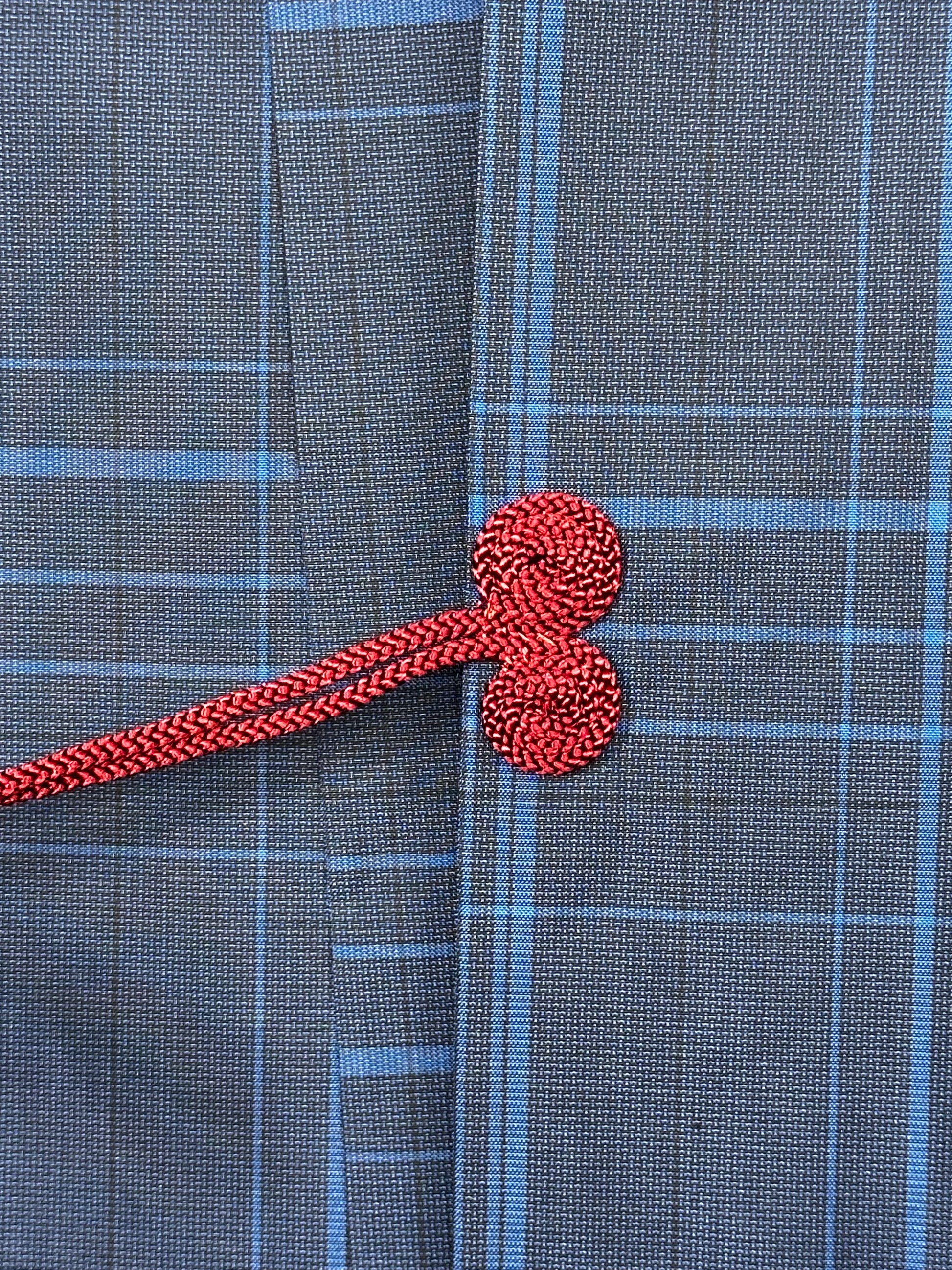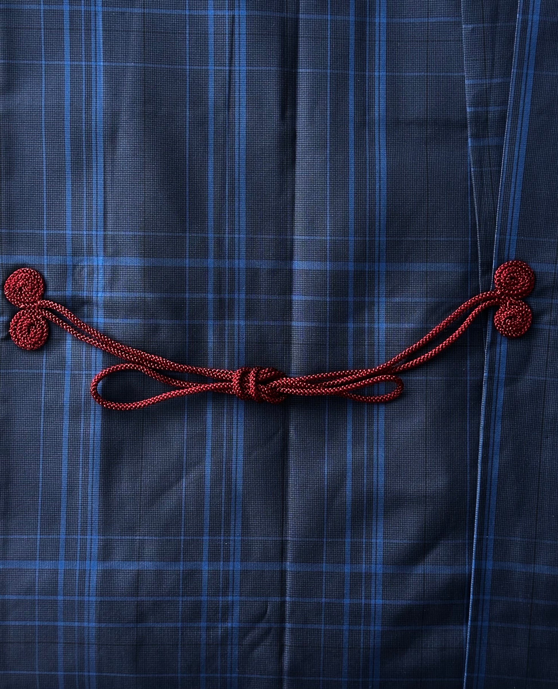 Style: This dochugi is both functional and fashionable, featuring dark red braided cords (himo) at the front, with an additional inner cord for a secure and adjustable fit. Its relaxed, wrap-around style offers a cool, casual look with a traditional twist.