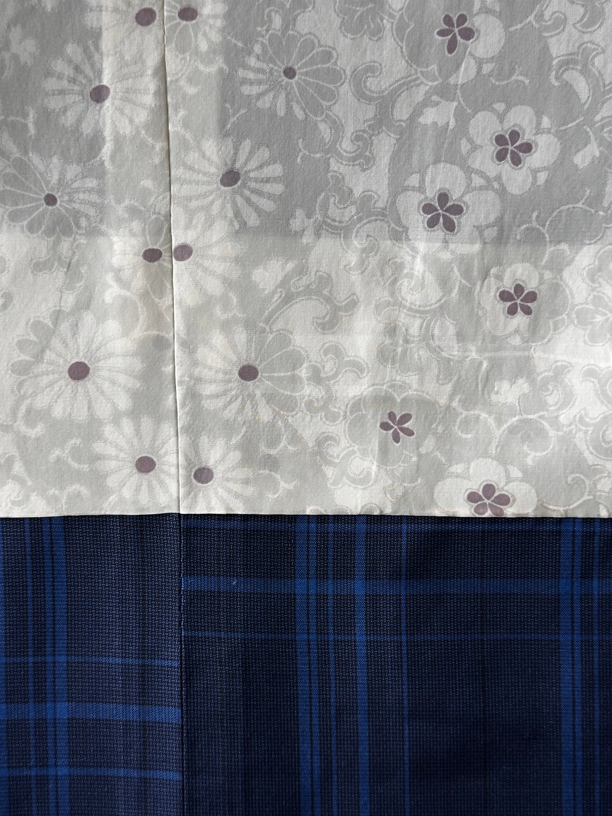 Fabric: Made from smooth pongee silk, the fabric has a soft sheen and a slight texture, providing a comfortable and elegant drape. The dark indigo color is both rich and versatile, while the checkered pattern adds a touch of sophistication and edge.