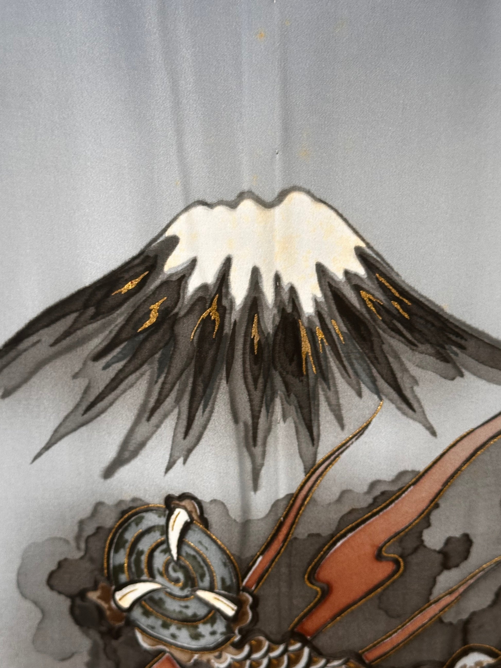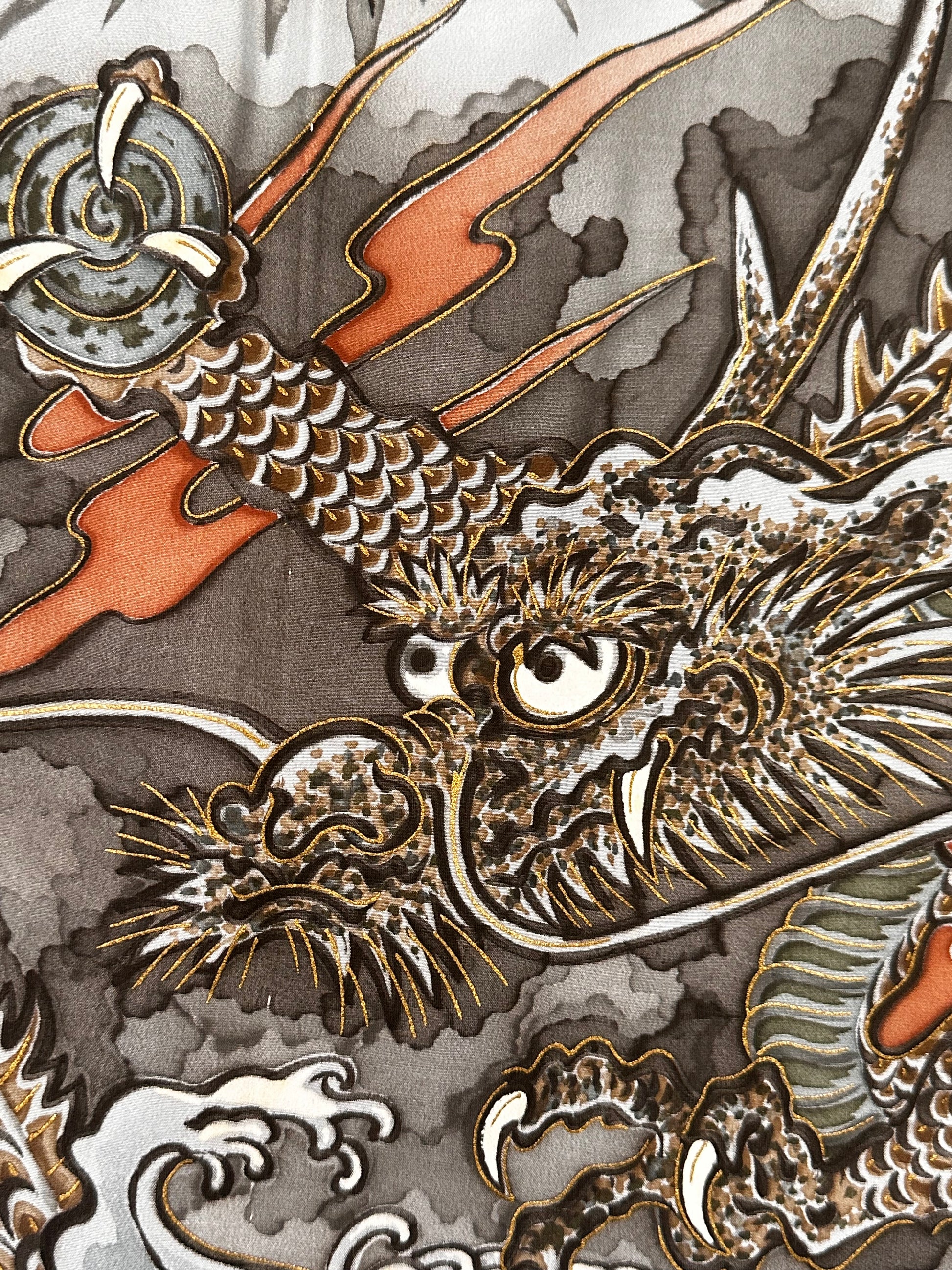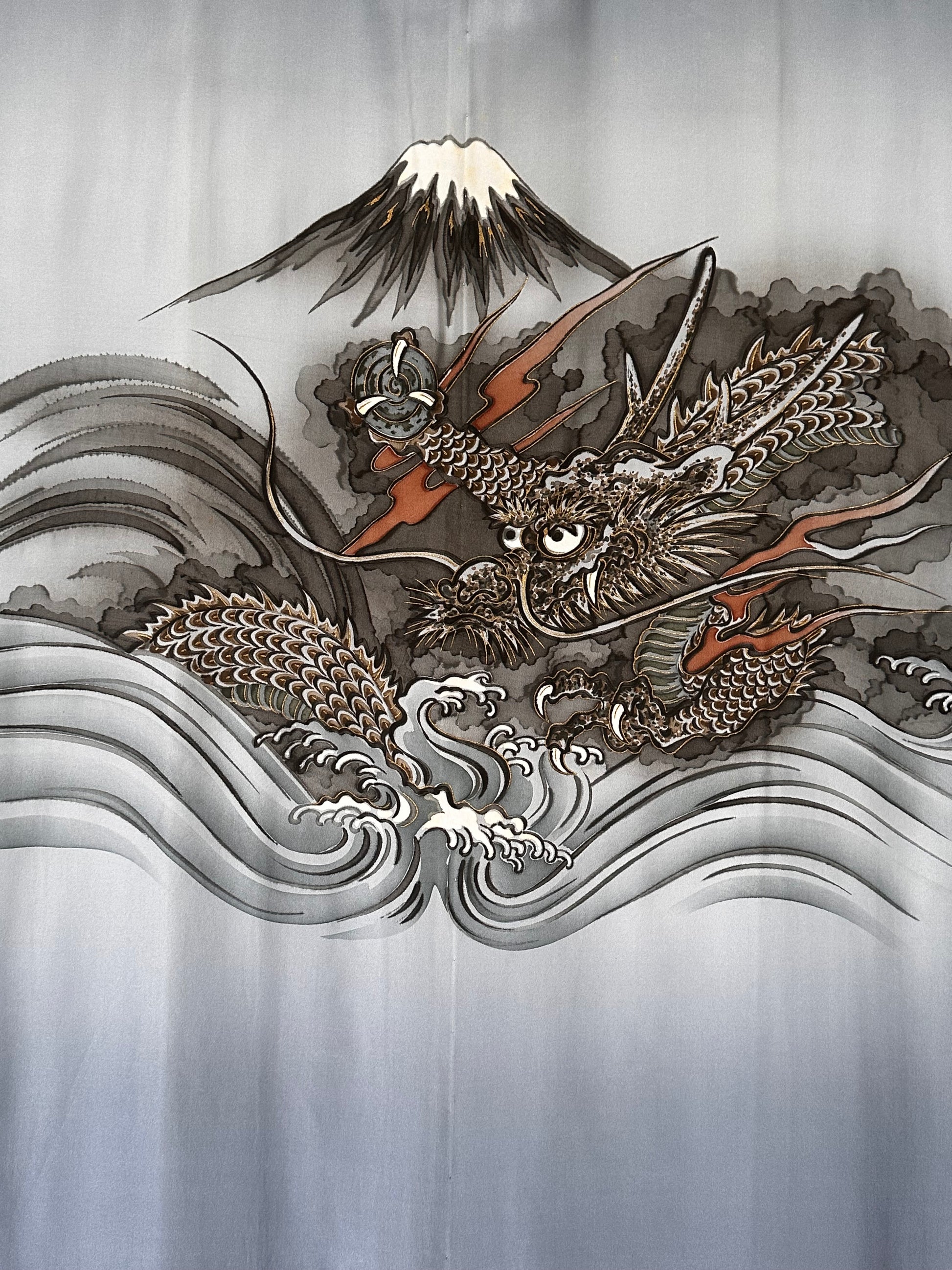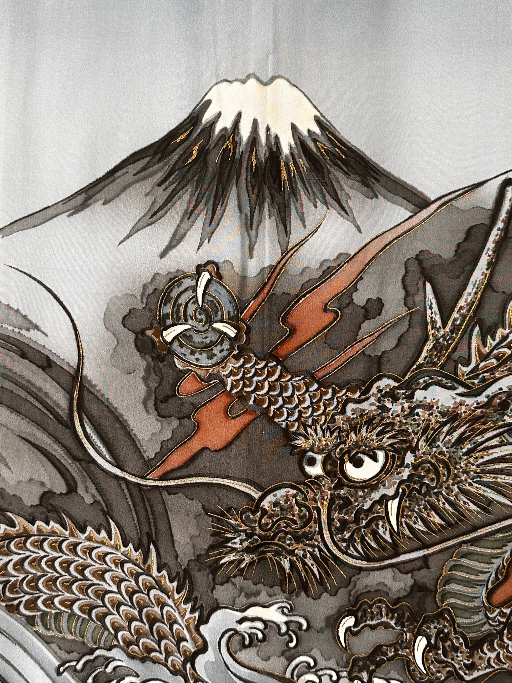 Style: Traditional Japanese juban with bold dragon and Mount Fuji artwork