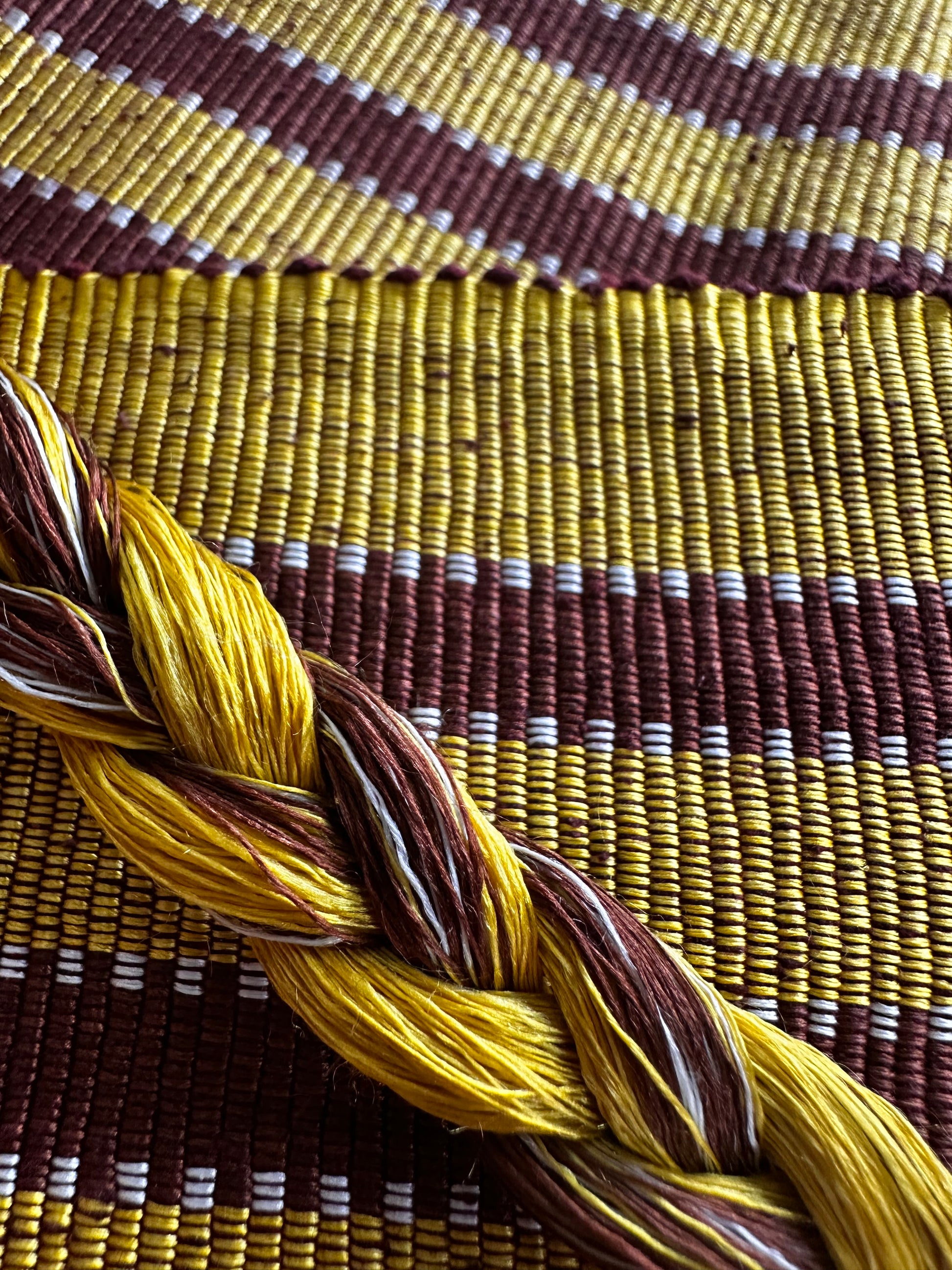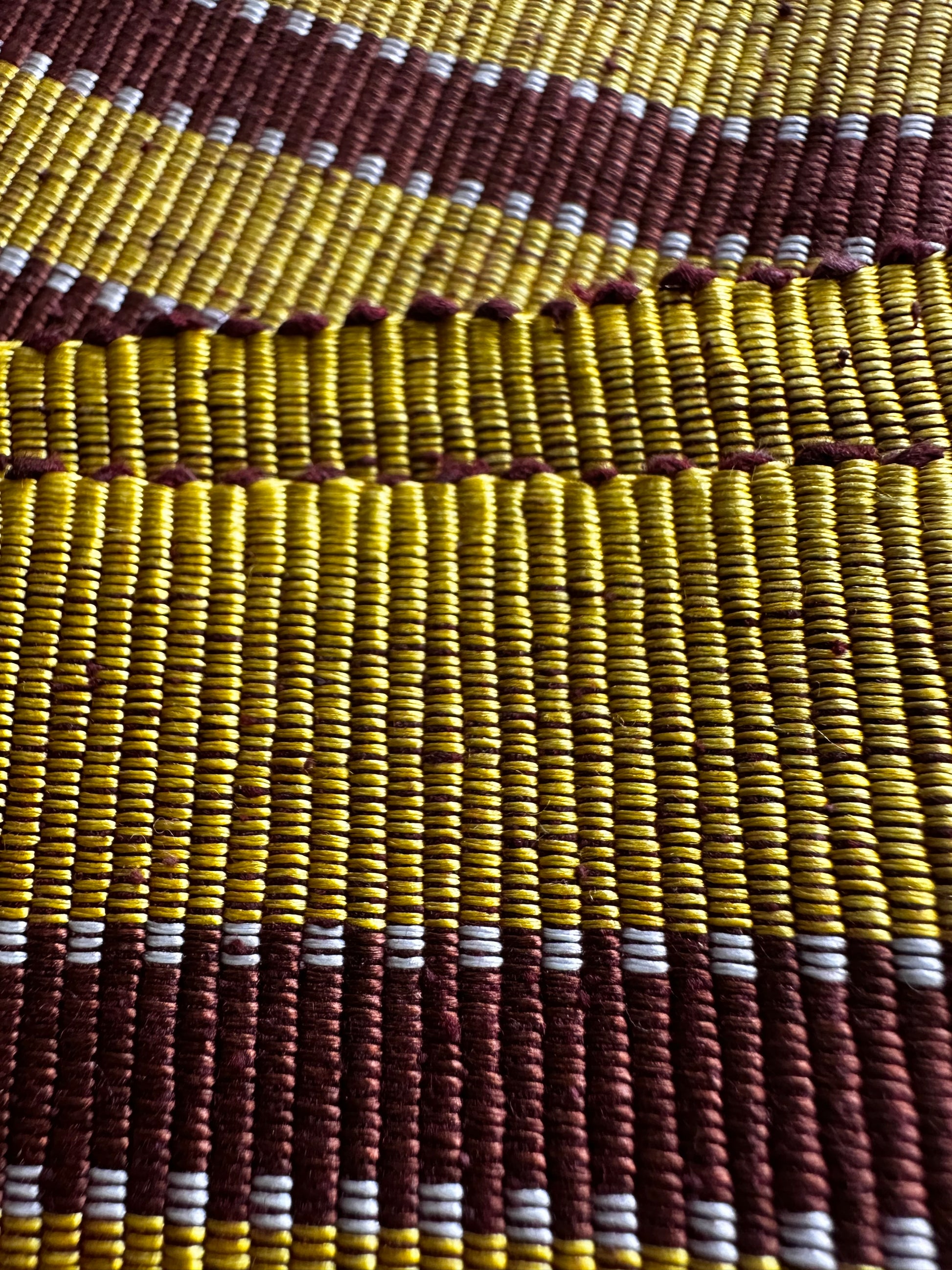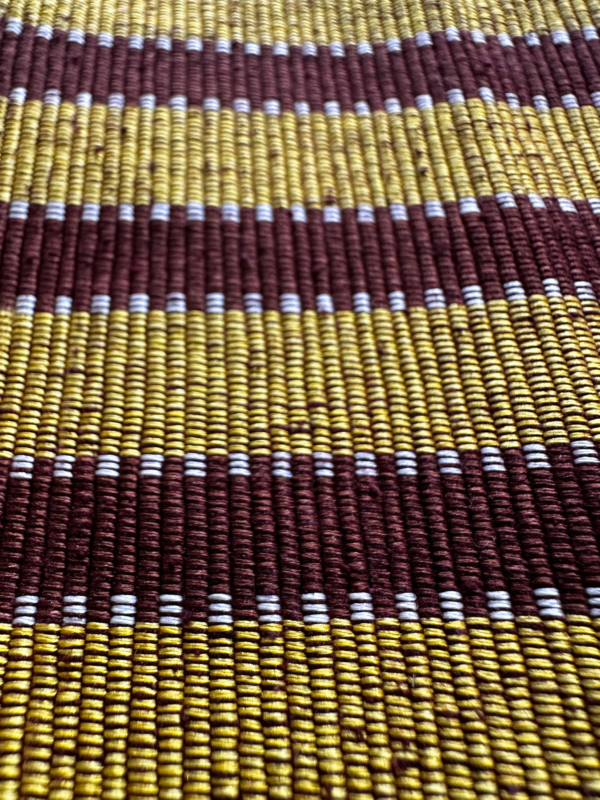 Description: This Kakuhanba Obi (half-width obi) for men is crafted from fine woven silk, offering a refined and luxurious finish. The obi features a sophisticated blend of yellow, golden, brown, and white threads, with yellow-golden and brown tones standing out as the main colors. Tassels are elegantly attached to each end, adding a touch of traditional flair. This piece is a rare find, in exceptional condition, showcasing a timeless design that exudes both craftsmanship and style. Perfect for formal occasions or as a statement piece to complement any traditional ensemble.