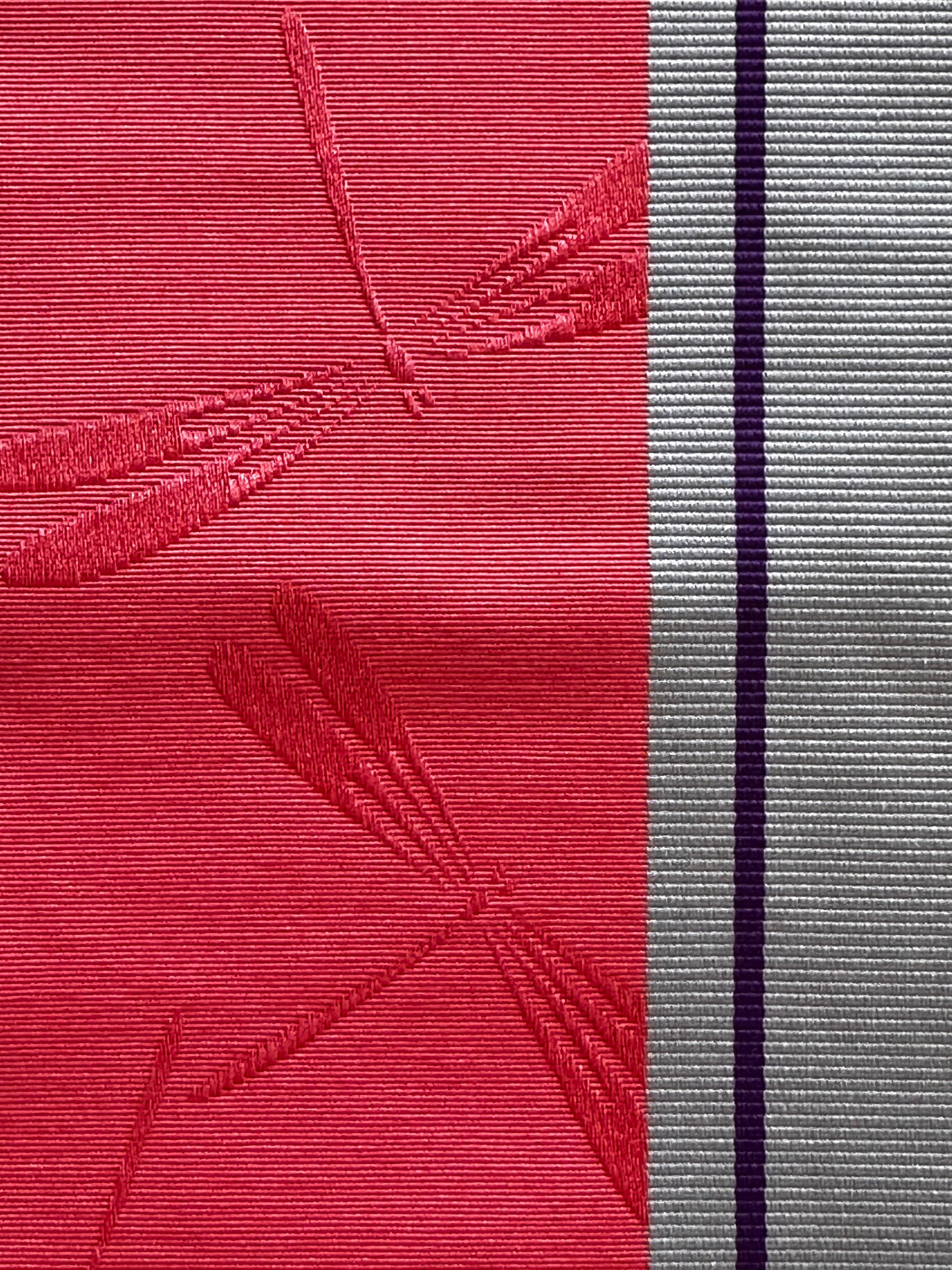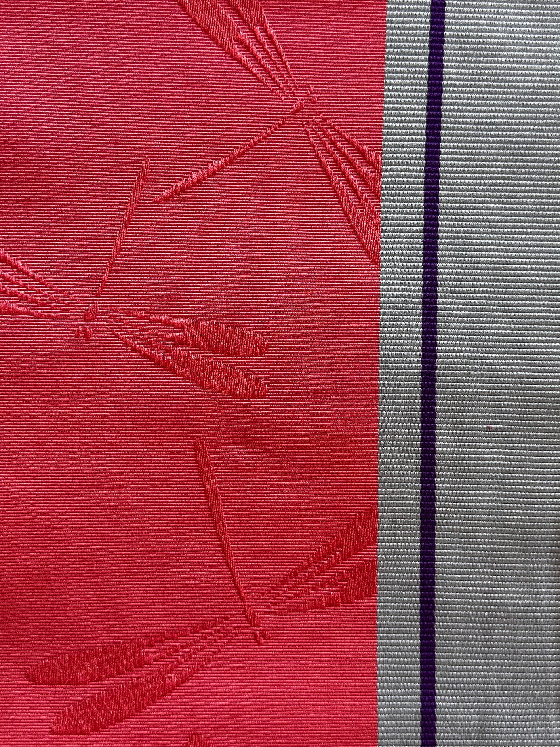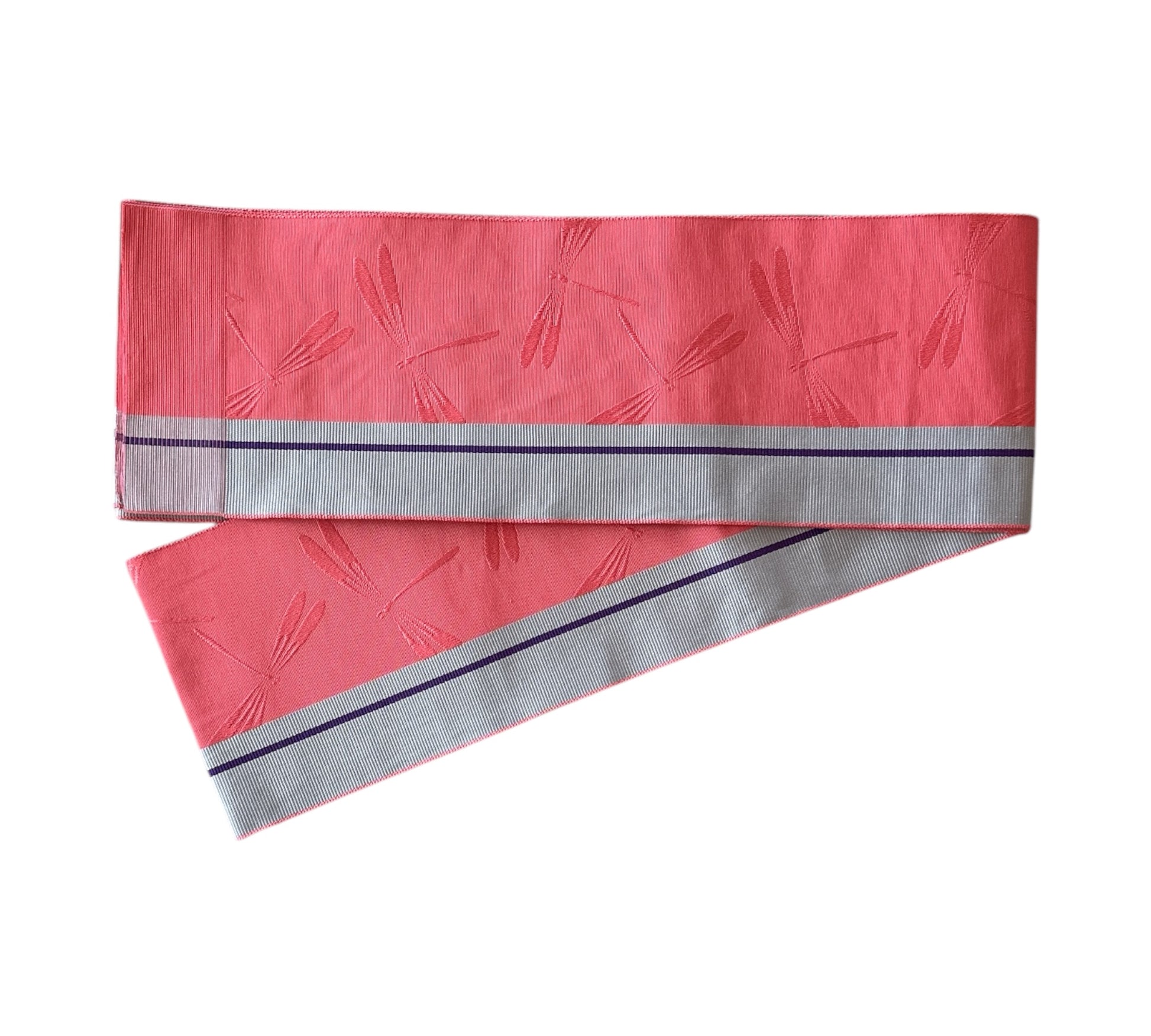 Description: Light as a summer breeze and full of subtle charm, this hanhaba obi captures the fleeting beauty of warm days and gentle winds. Woven on a soft salmon pink base, delicate dragonflies (tonbo in Japanese) dance across the fabric—symbols of grace, agility, and transformation in Japanese culture.