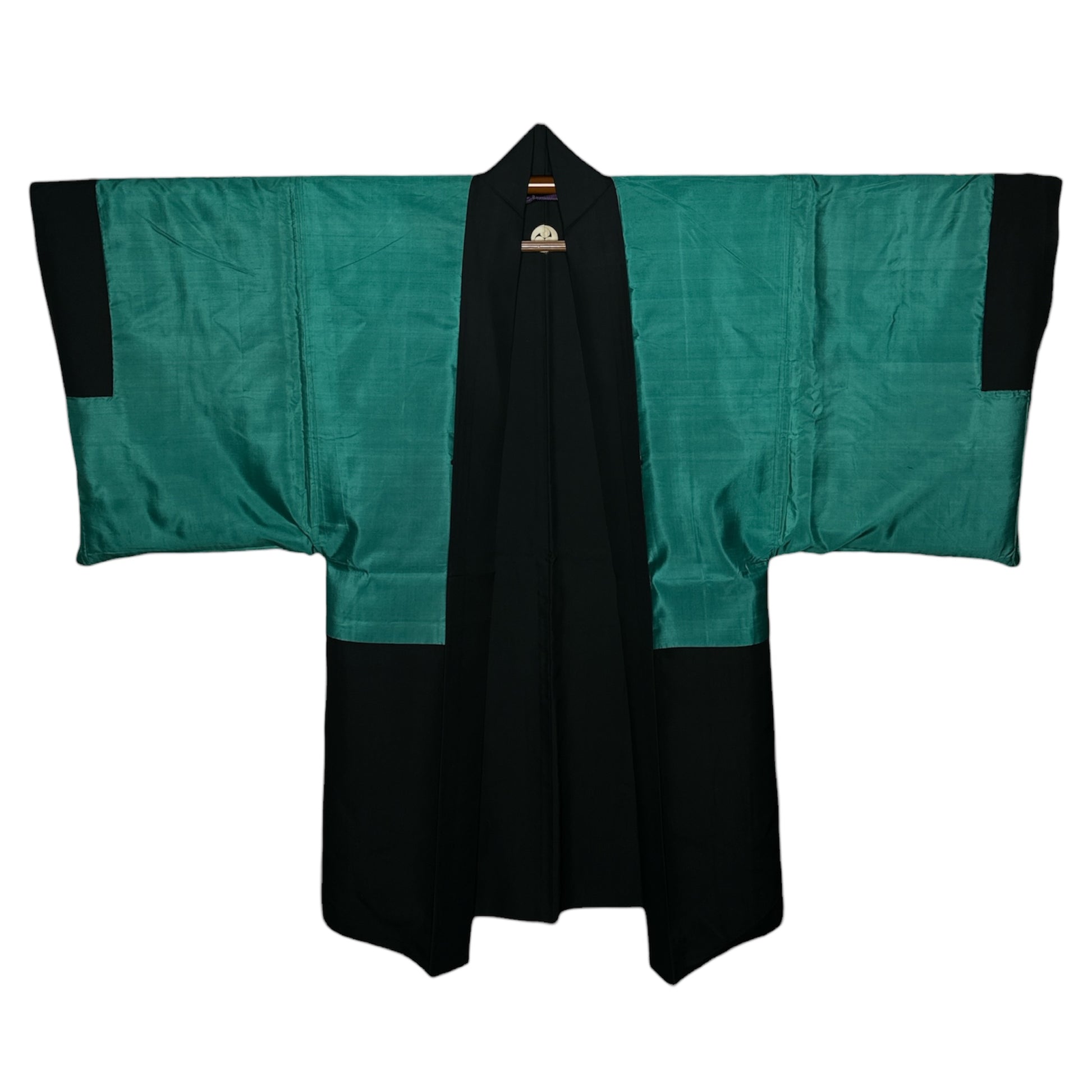 Style: A formal men’s haori traditionally worn over a kimono for special occasions. The inclusion of family crests emphasizes its formal character while maintaining a timeless, minimalist aesthetic.