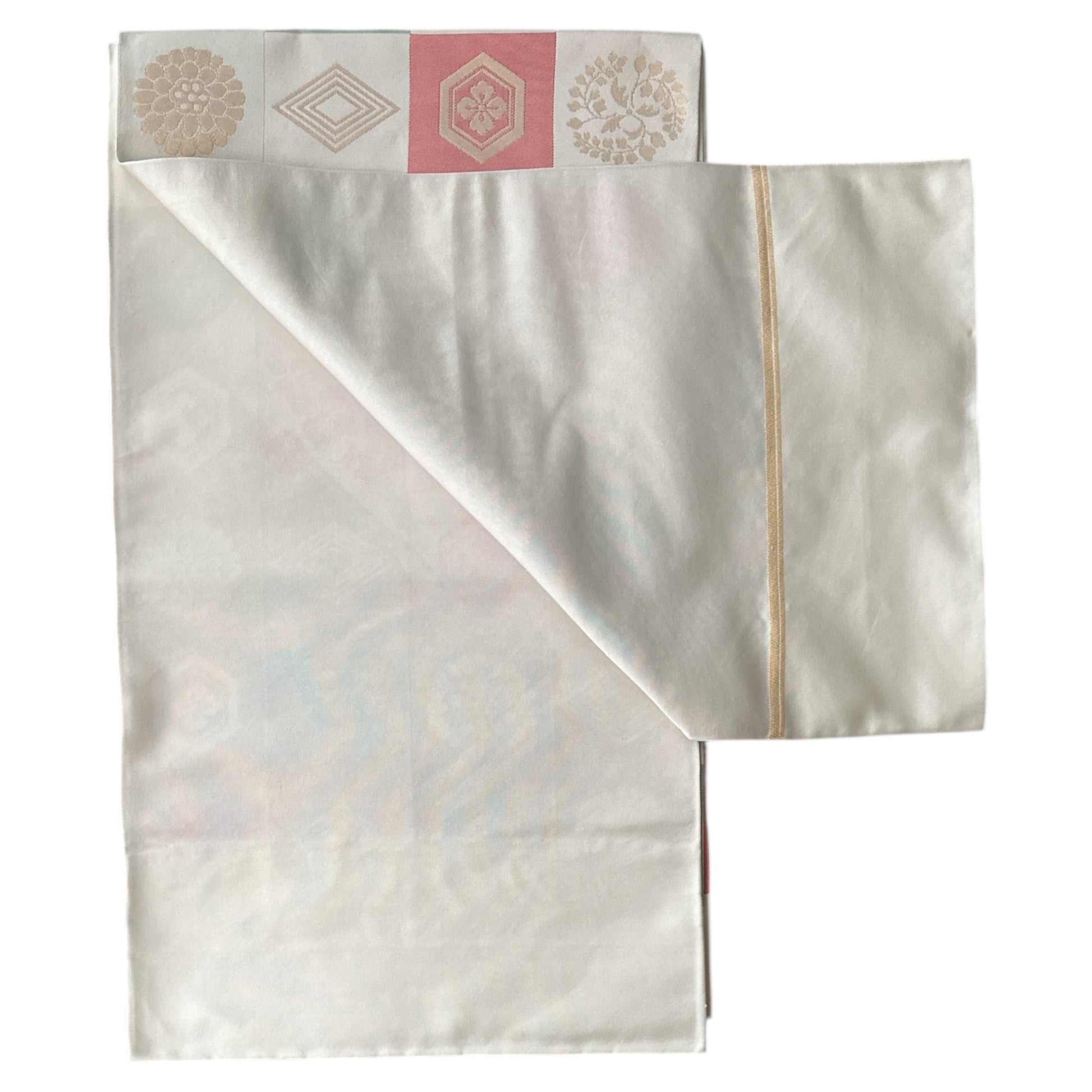 Subtle gold and ivory threads are woven throughout, adding a gentle shimmer and luxurious texture to the piece. This obi brings grace and elegant charm to any kimono coordination.