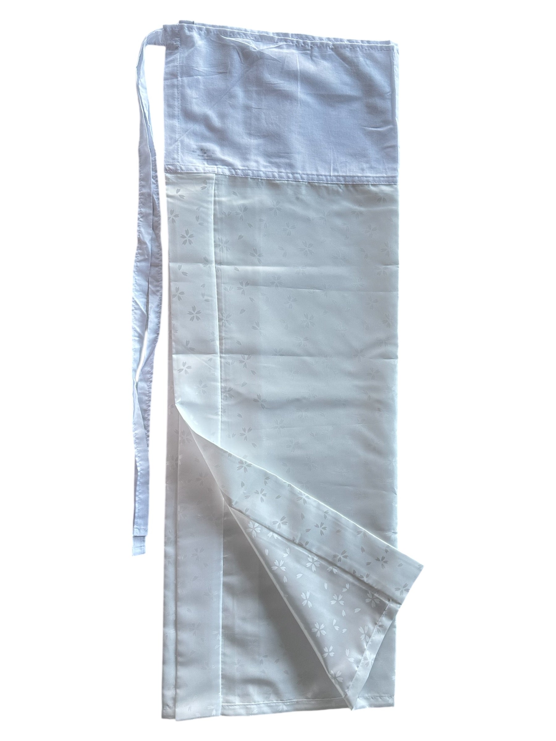 Style: The classic white color, accented by delicate sakura flowers, brings a timeless and refined aesthetic to this set. Ideal for layering under kimono, the sakura embellishments lend a touch of traditional Japanese charm that complements a wide range of kimono styles and colors. Additionally, the hanjuban features a structural piece at the back to help maintain the collar (eri) in its perfect shape, ensuring a neat and crisp look essential for the traditional aesthetic.
