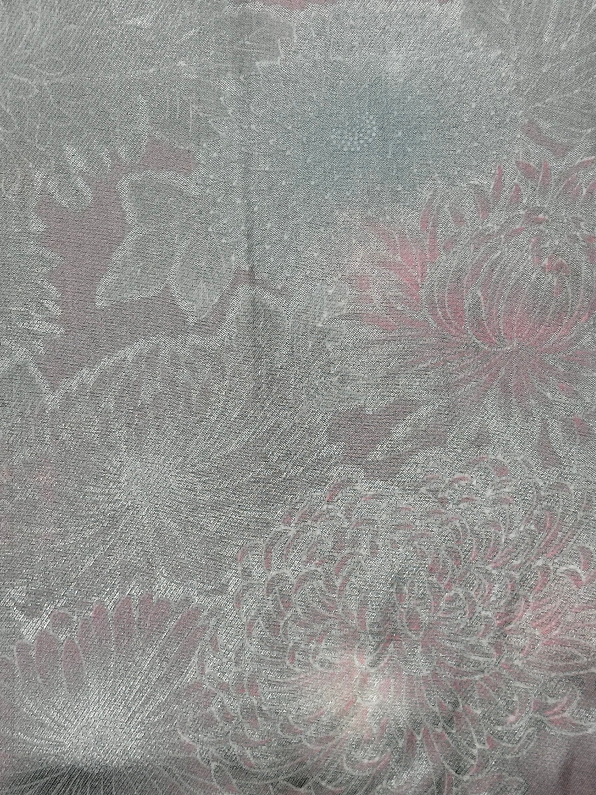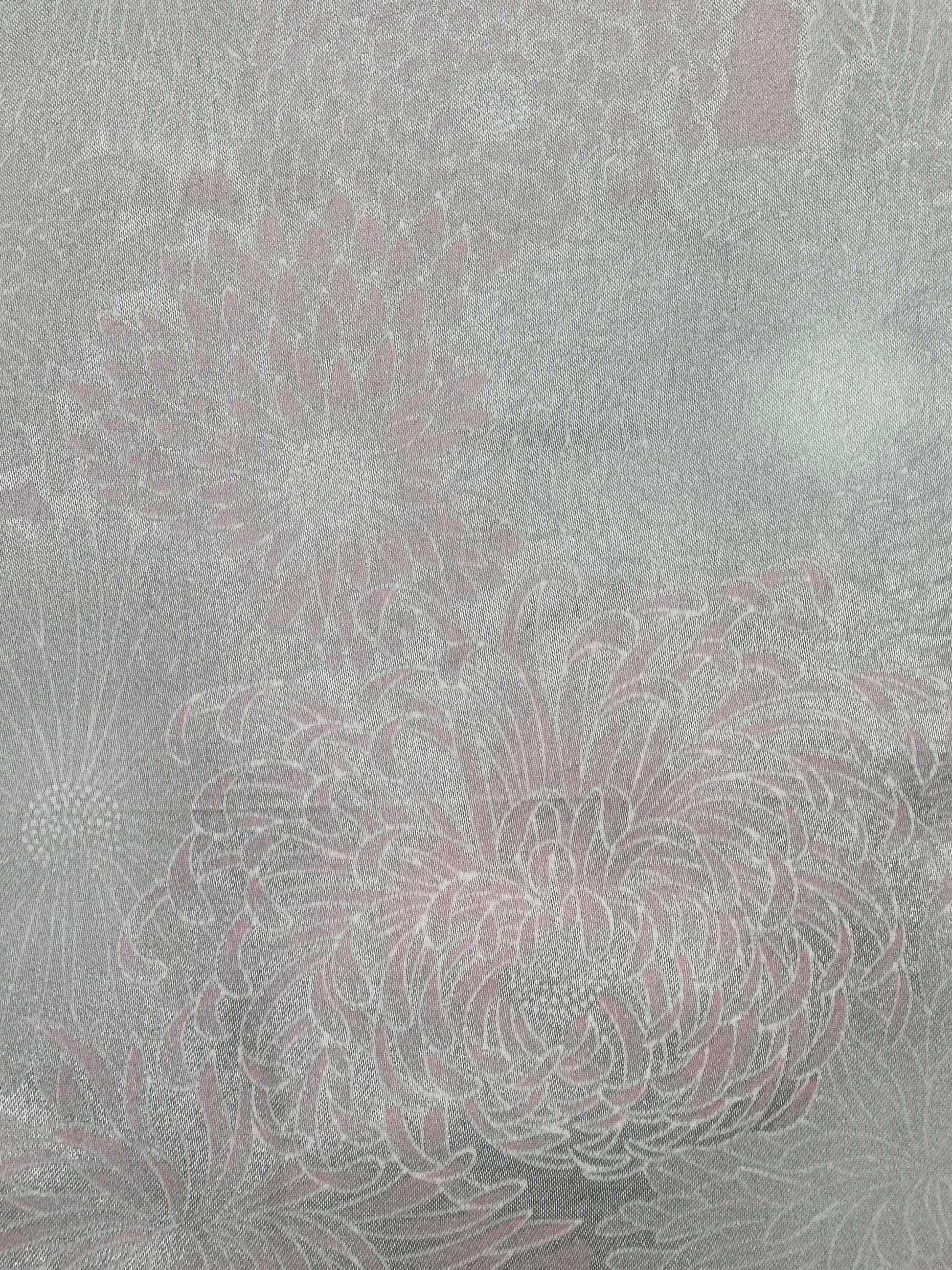 Fabric: Very fine wool for both kimono and haori, offering a lightweight yet structured feel. The kimono is hitoe (unlined), while the haori features a synthetic silk inner lining with floral decoration.