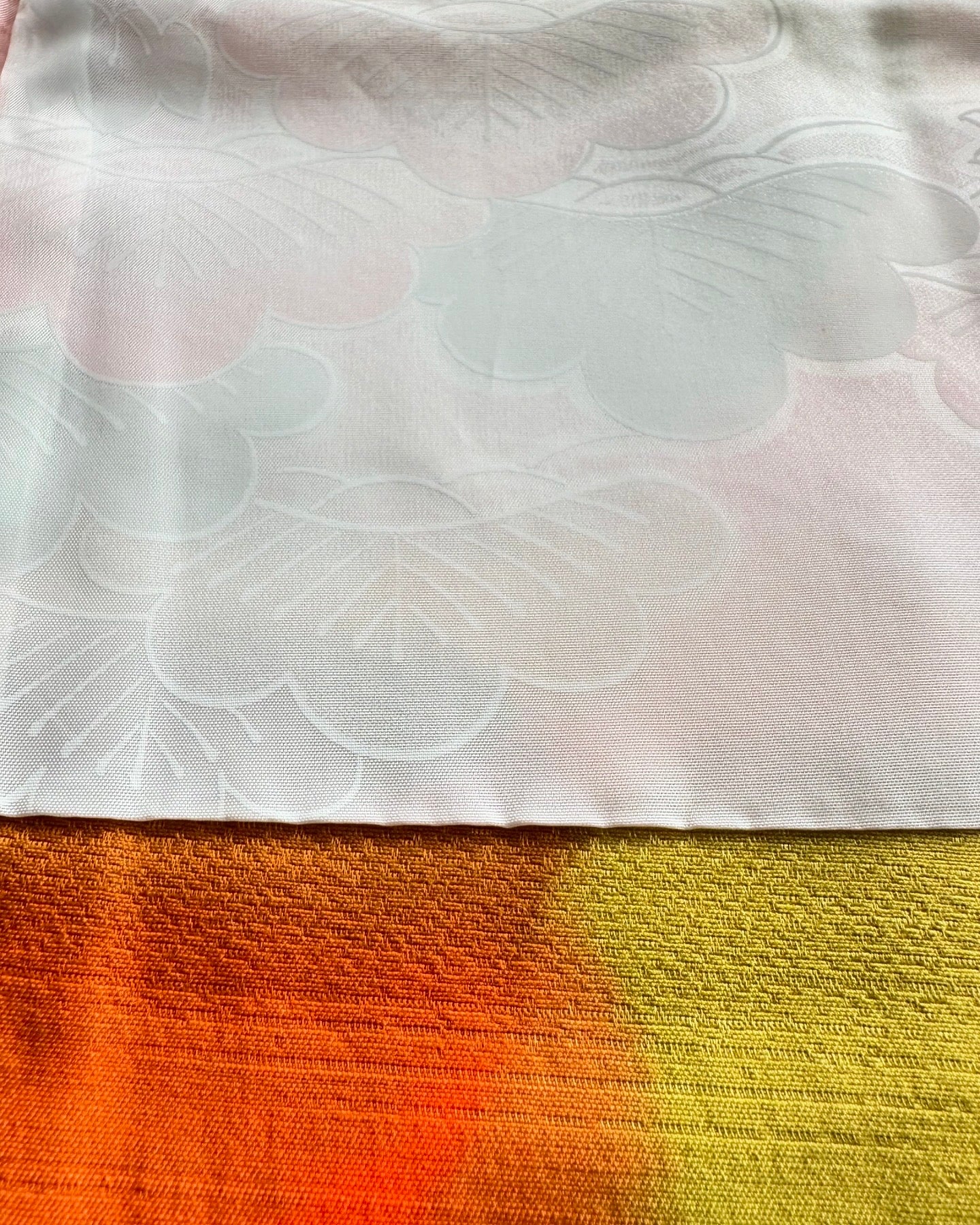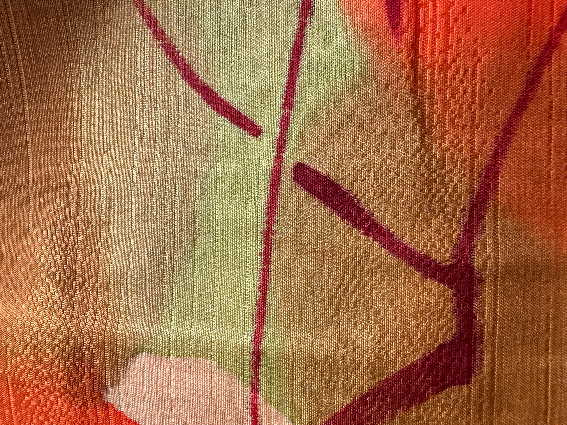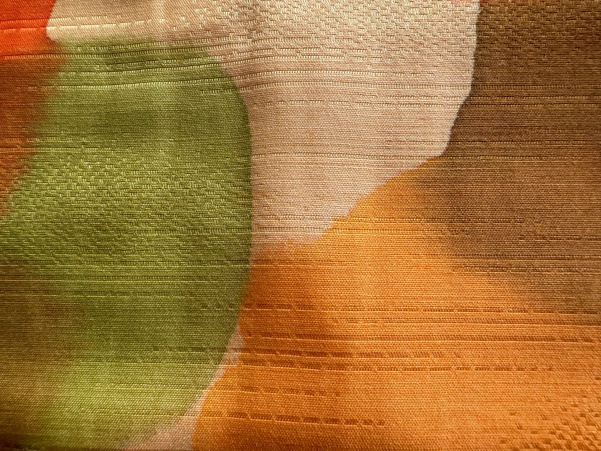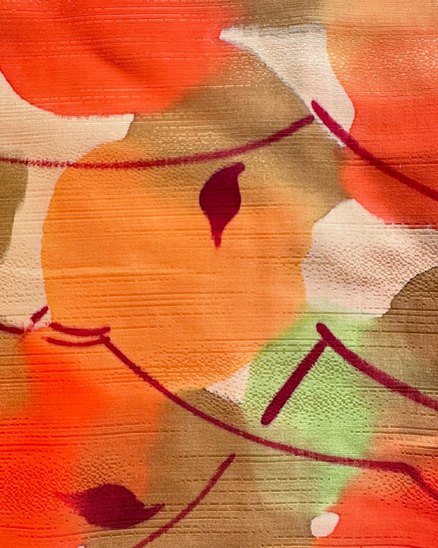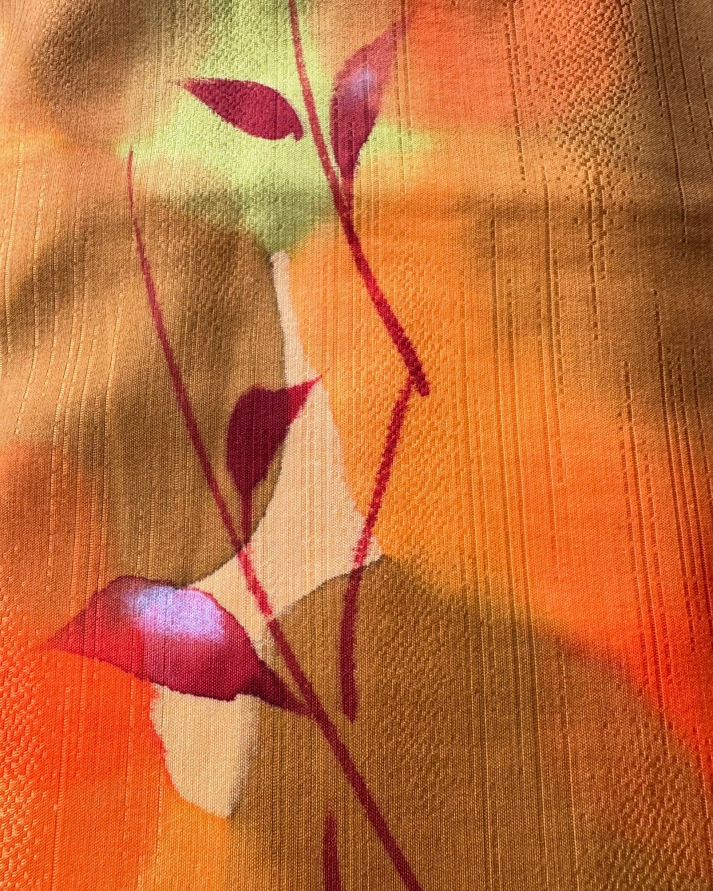 Description: This vibrant haori is a true celebration of color, featuring an array of vivid orange hues intertwined with rich autumn shades of green and red. The design mimics a watercolor painting, with leaves gracefully cascading across the fabric, creating a stunning visual tapestry that embodies the essence of the fall season.
