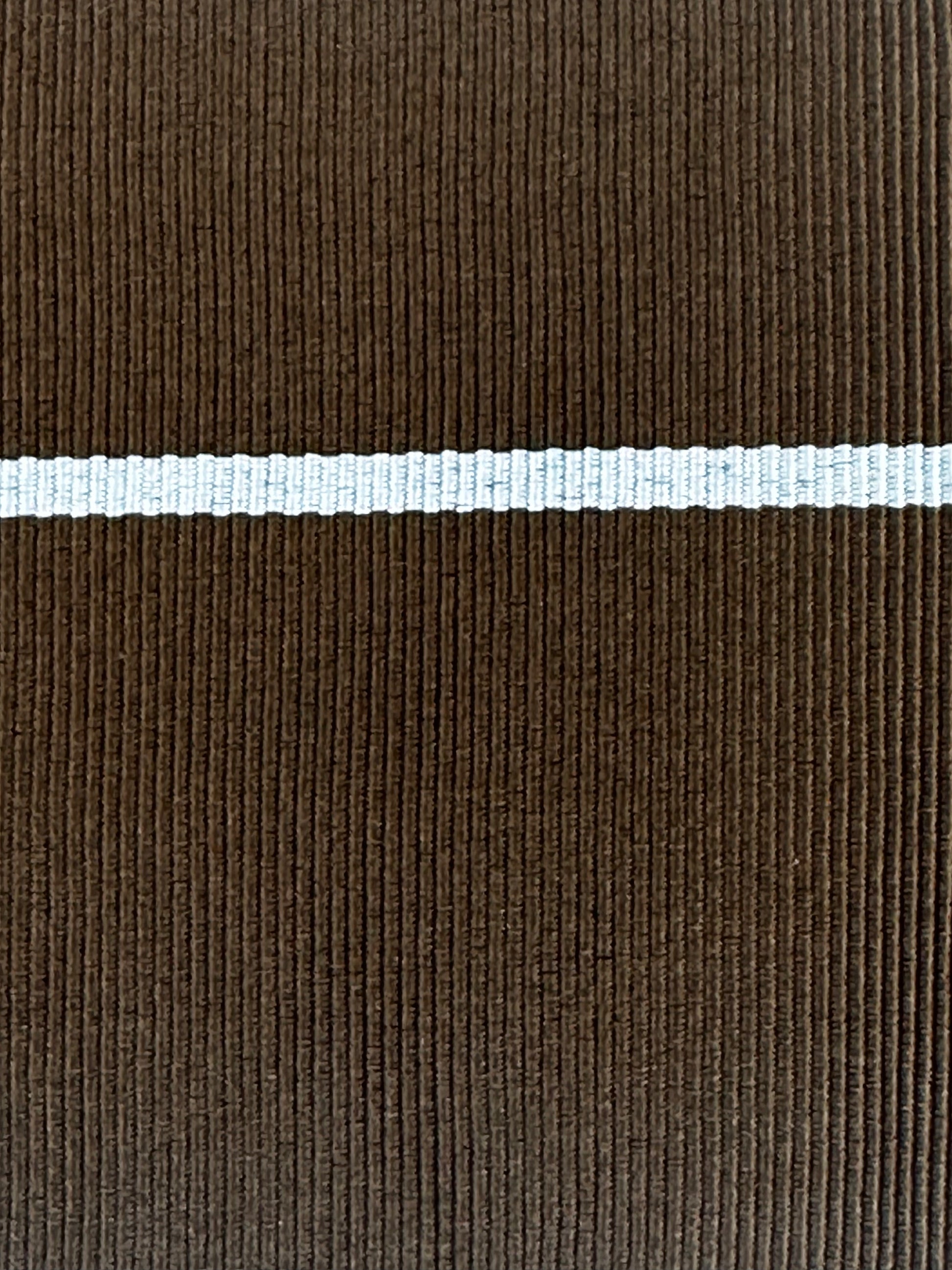 Description: This refined men’s kakuhaba obi features a warm, earthy light brown tone accented with fine woven patterns in soft white. The main side presents a subtle horizontal stripe design that adds rhythm and texture, while the lighter hues convey a calm, natural elegance. The reverse side offers a minimalist contrast, with a single continuous white line running through the center — a simple, refined detail that enhances the obi’s versatility.