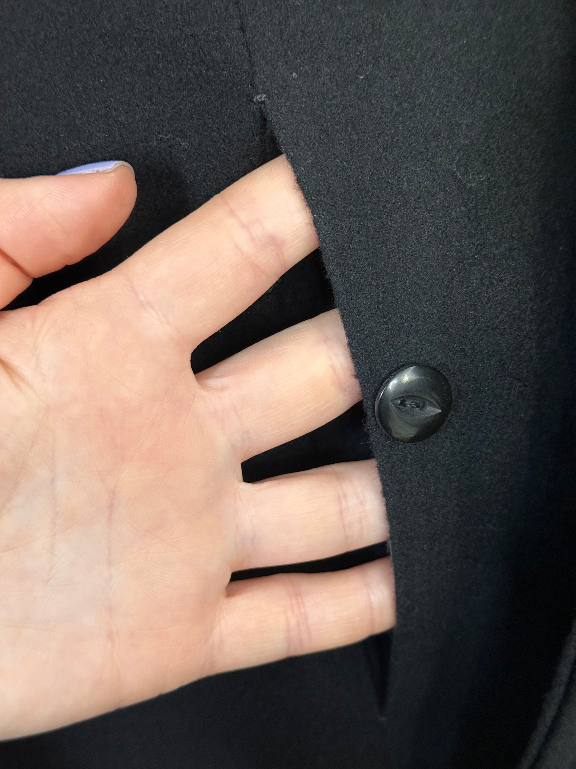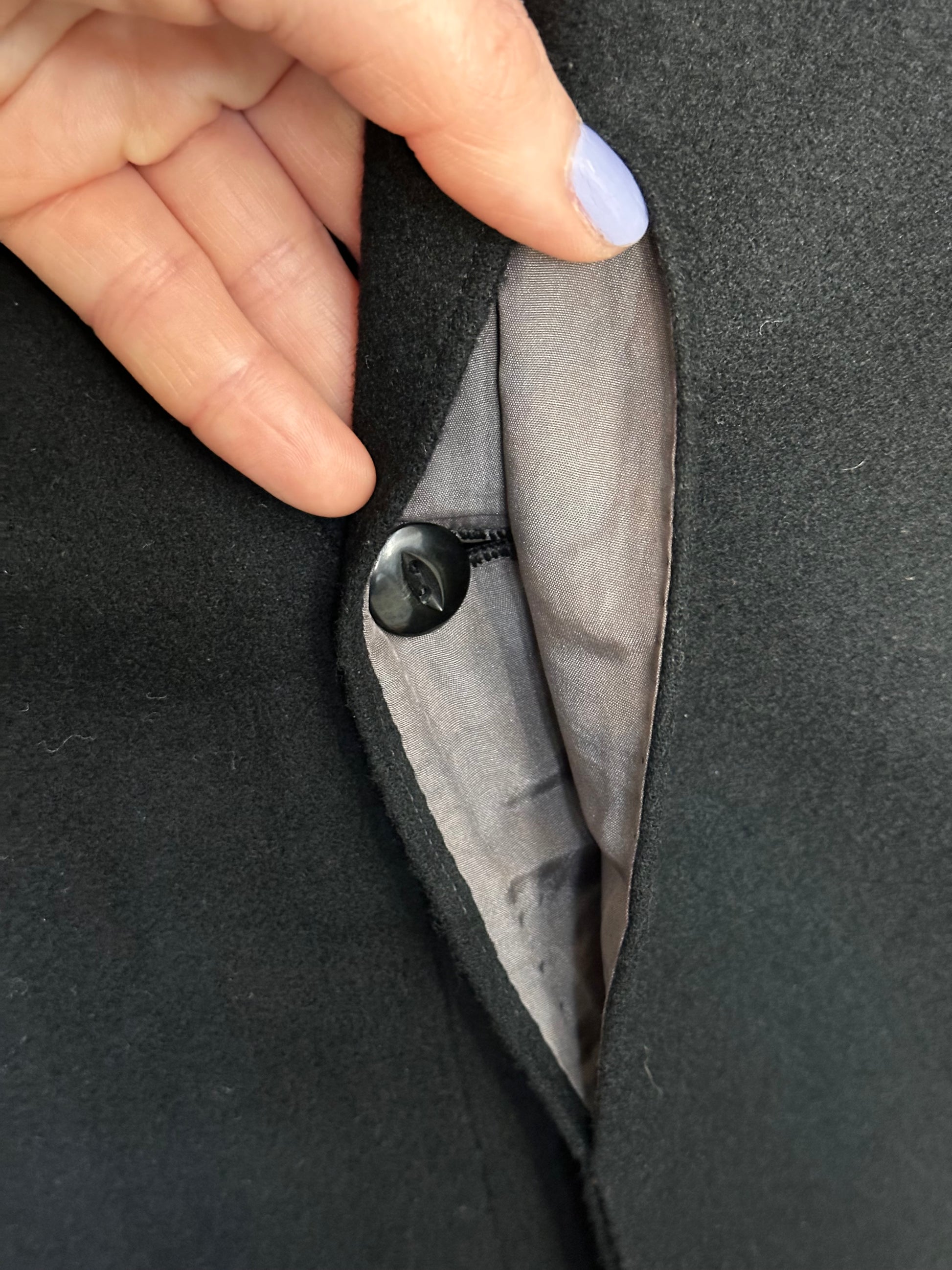 Fabric: Wool blend – soft, warm, and structured with a refined drape.