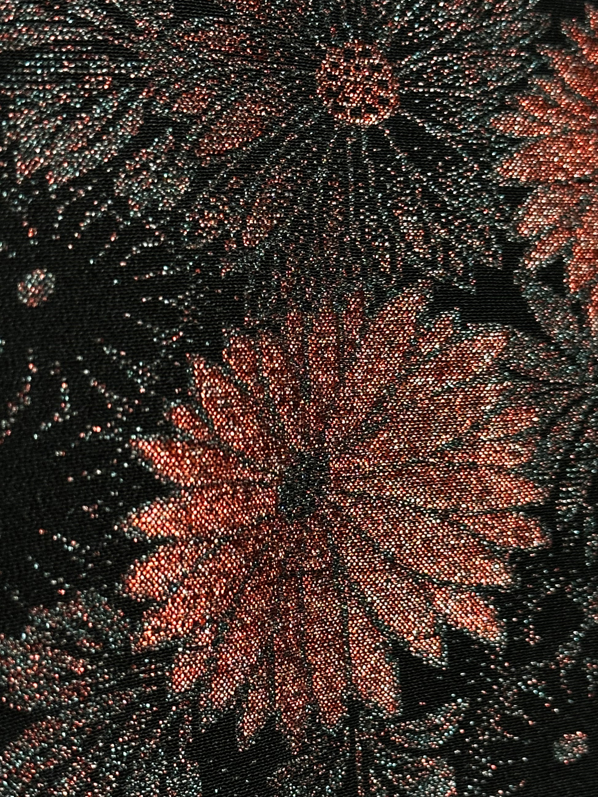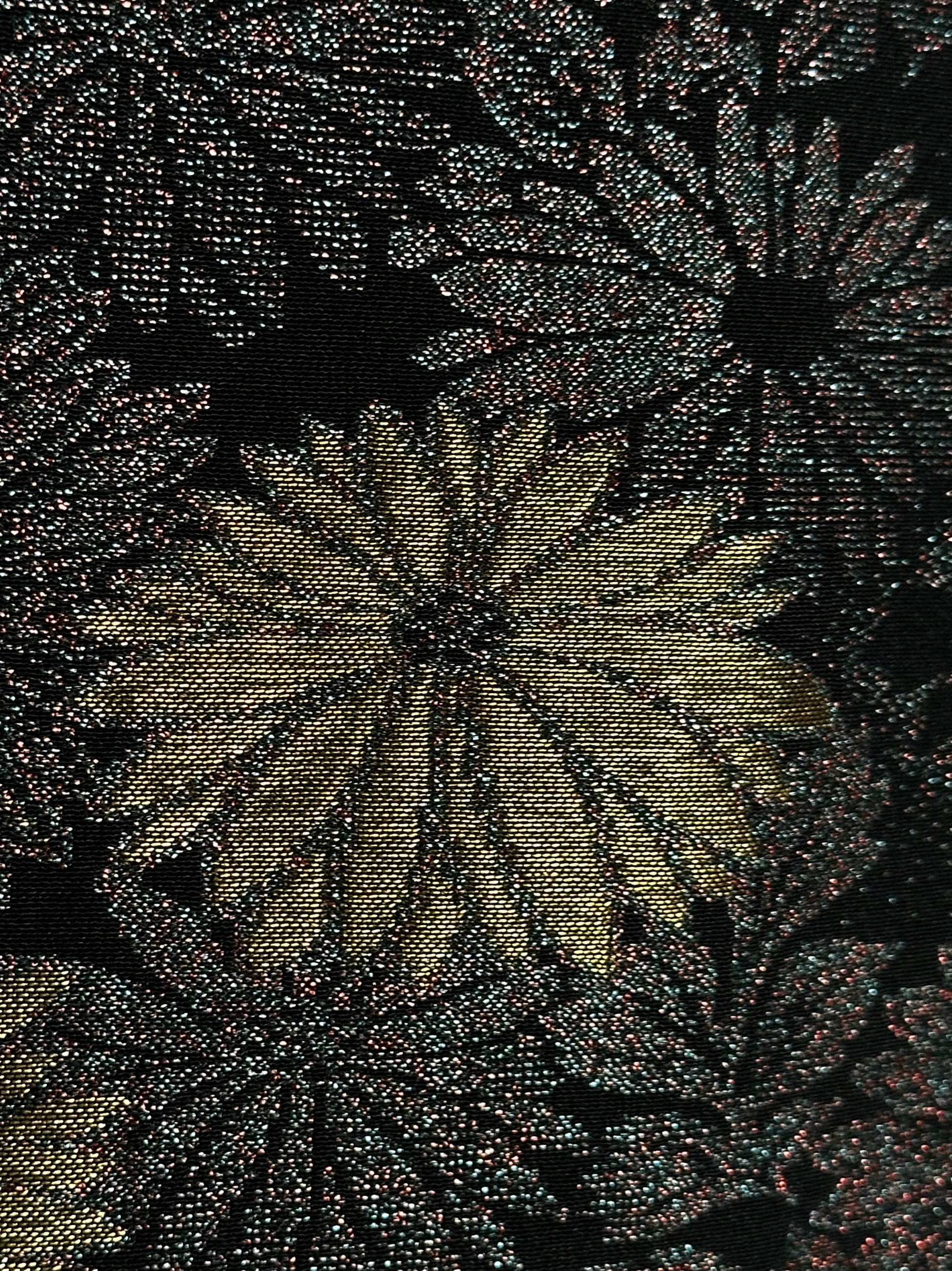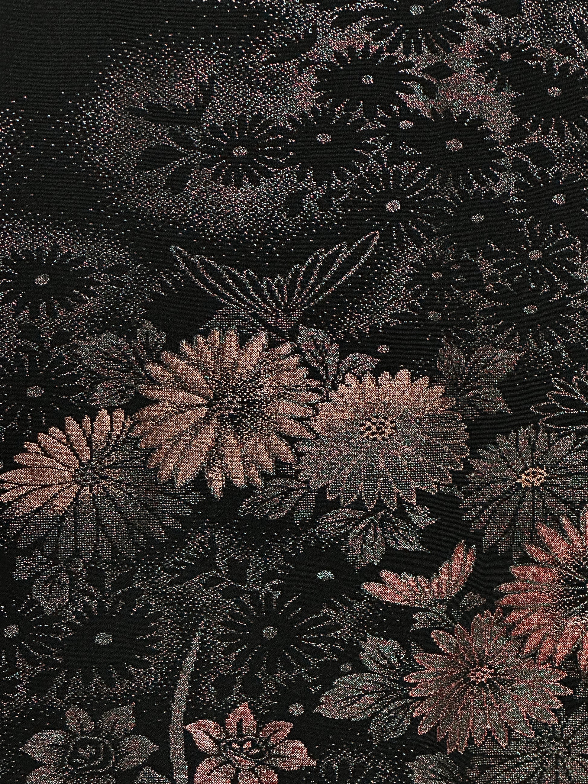 Fabric: Black silk exterior with metallic-threaded; butter-colored rinzu silk lining.