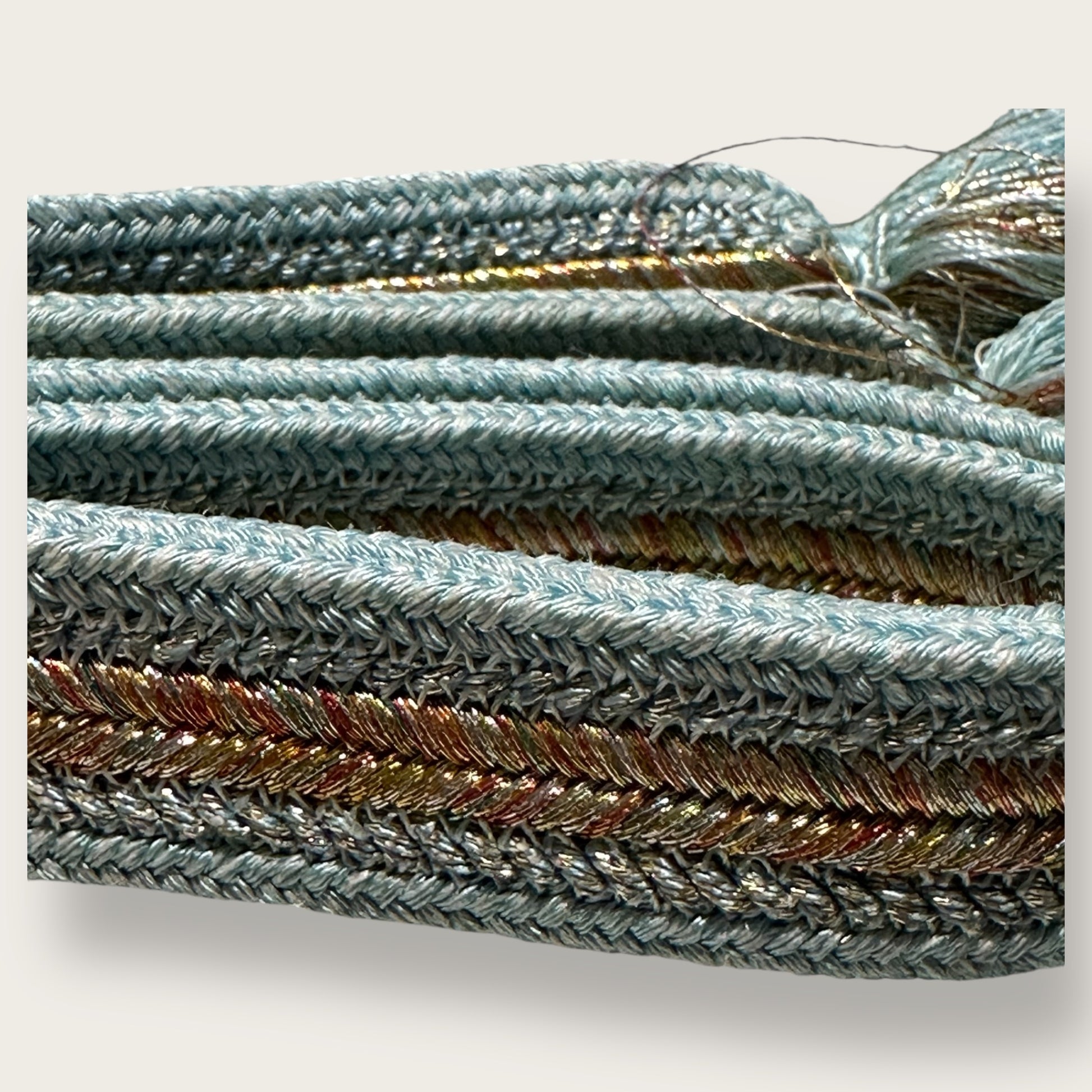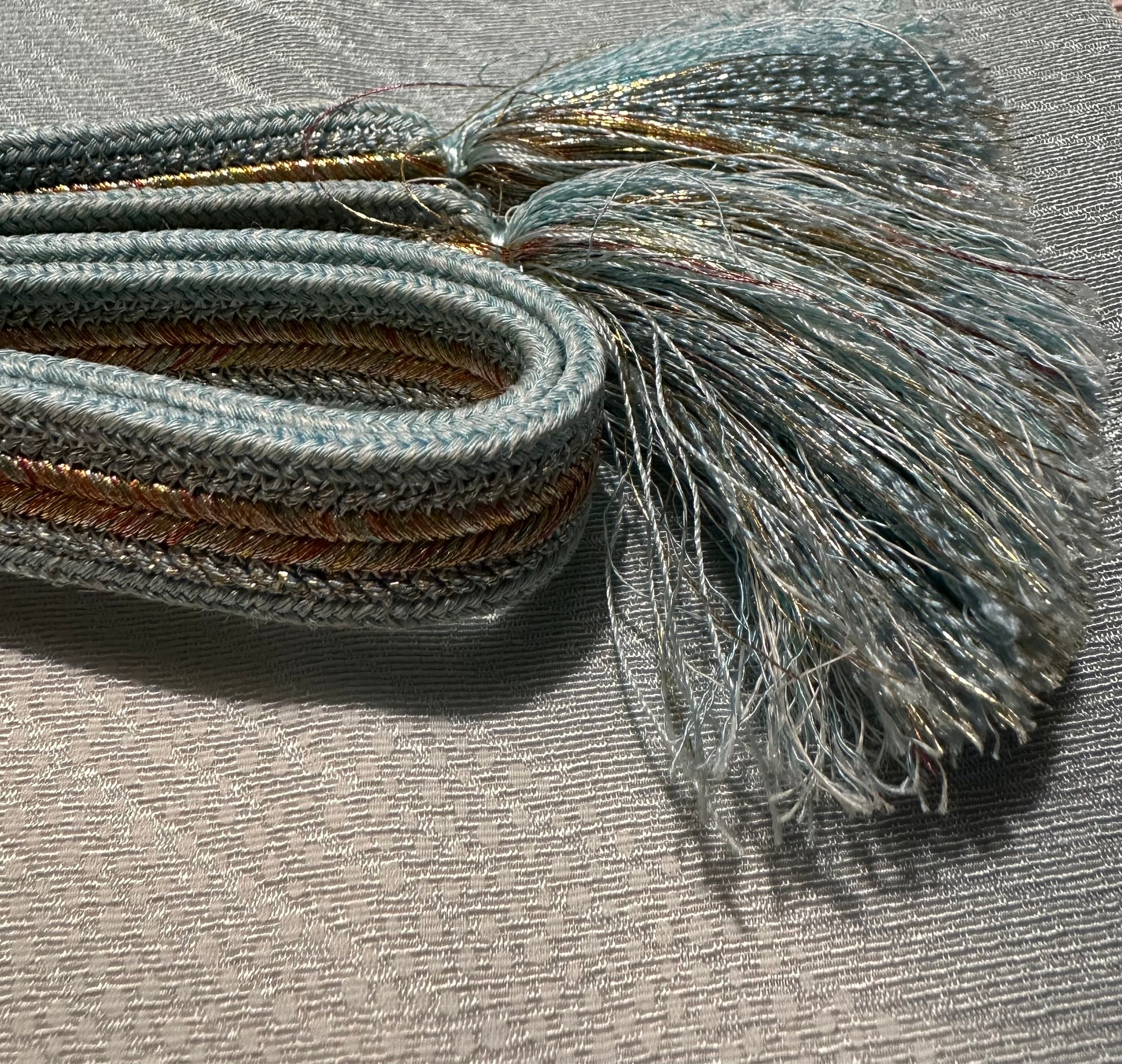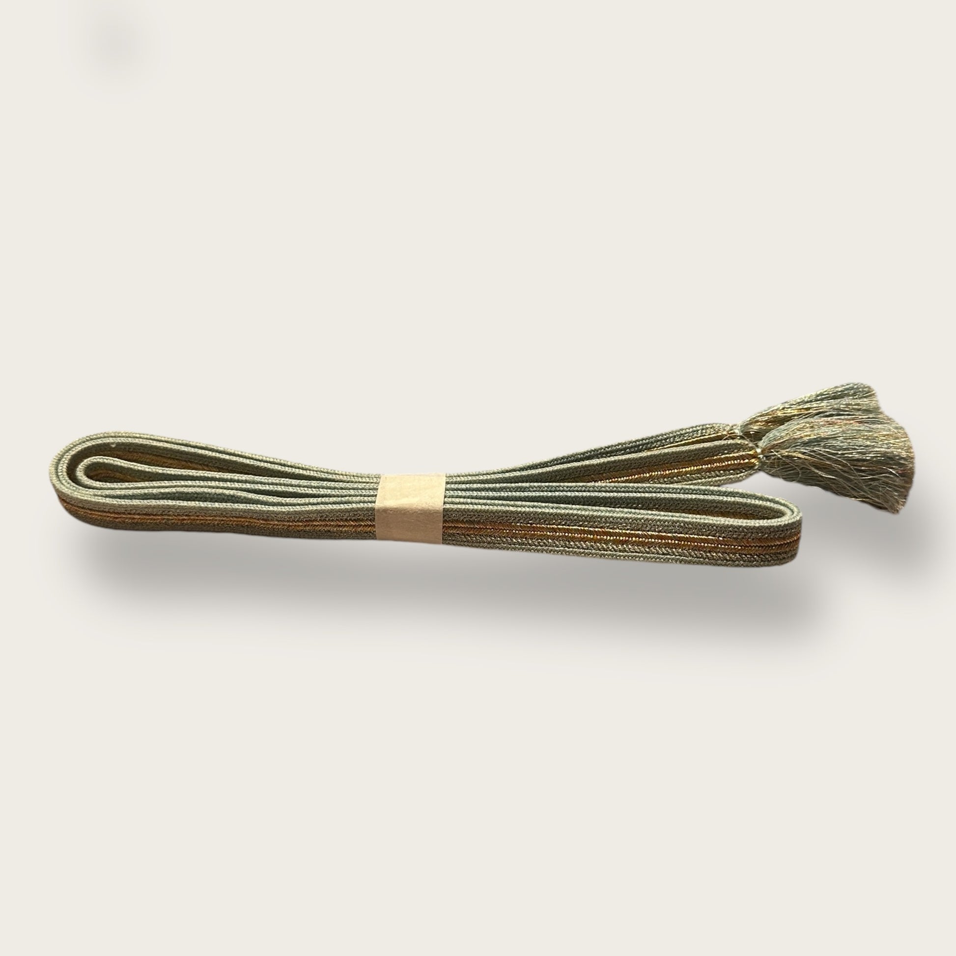 Obijime Use in Kitsuke: The Obijime is a decorative and functional cord used to secure the obi in place, tying it firmly to prevent slipping. It is tied around the waist, helping to keep the obi structure secure and in position. While it provides stability, the Obijime also adds an elegant, refined finishing touch to the obi, enhancing the overall appearance of the kimono. An essential part of kitsuke, it combines both practical function and aesthetic beauty to complete the kimono dressing process.