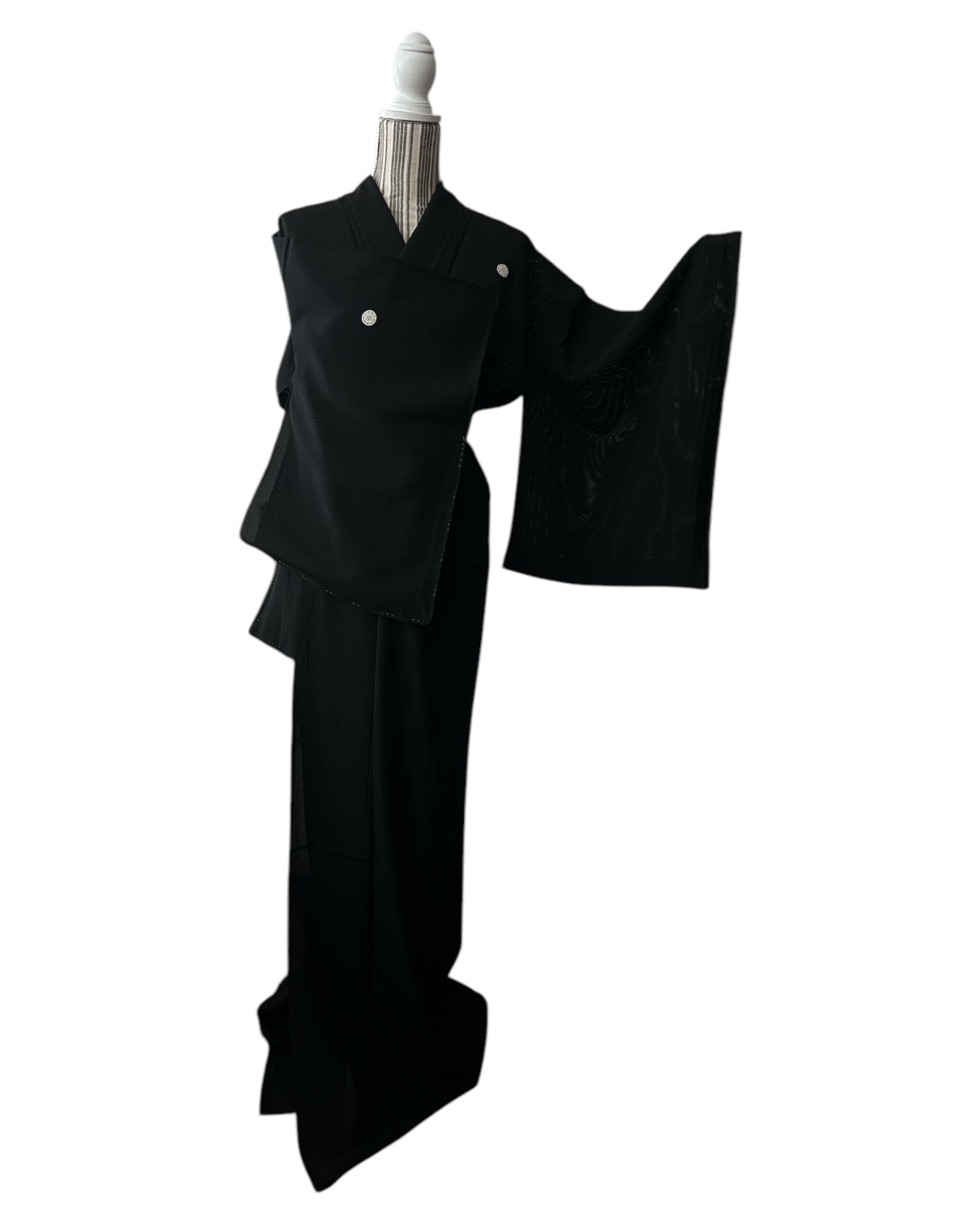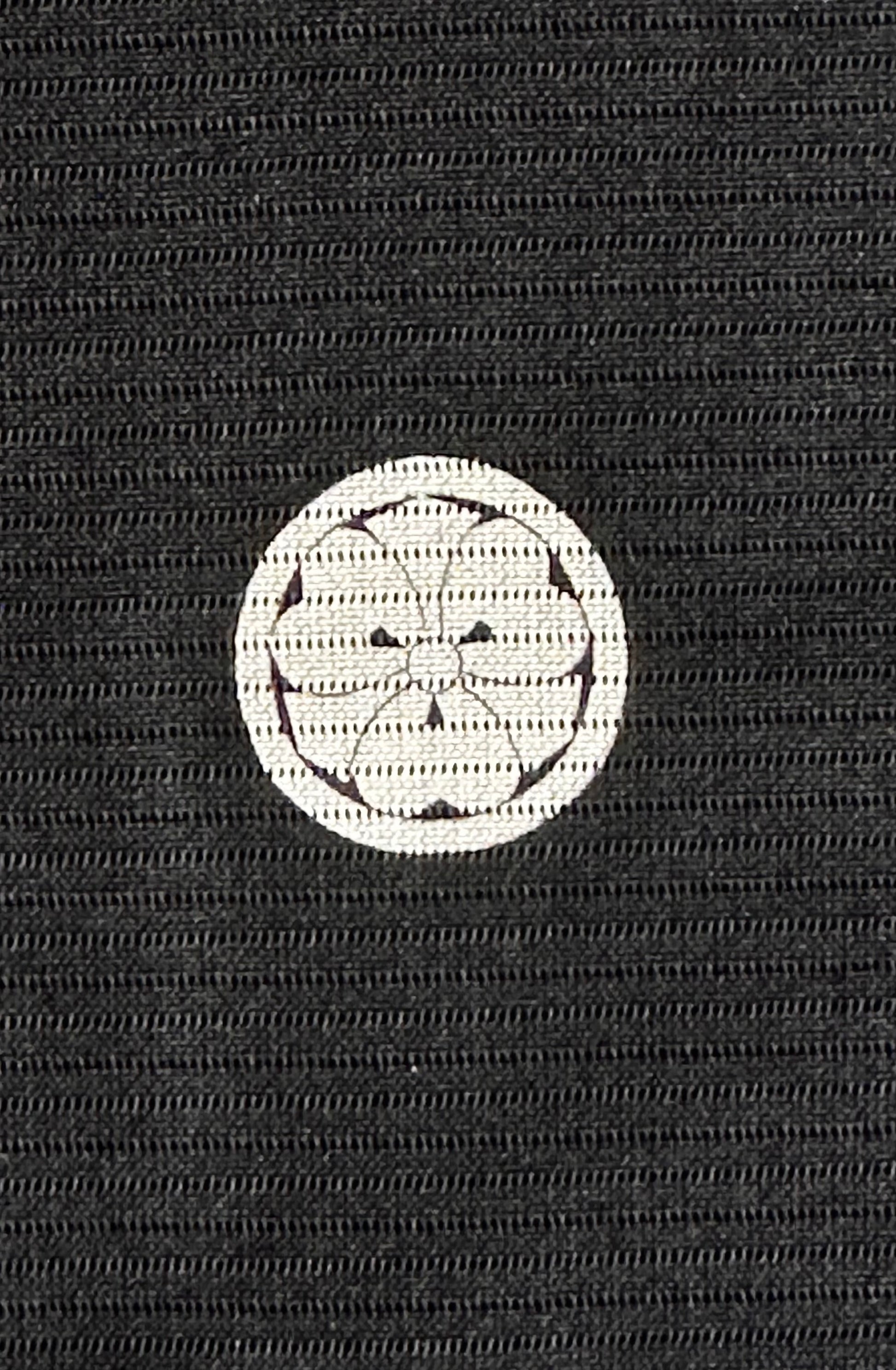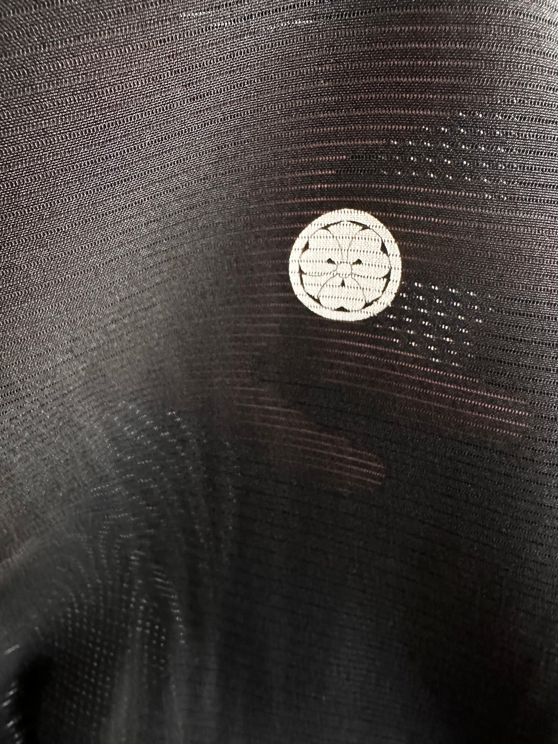 Înfrumusețat cu emblema a cinci Ken Katabami (剣片喰) emblemă de familie - simbolizând puterea, rezistența și noblețea, acest kimono poartă un sentiment de moștenire și tradiție, adesea asociat cu familiile de samurai . Designul său grațios și discret îl face ideal pentru evenimente formale, oferind un aspect elegant și rafinat.