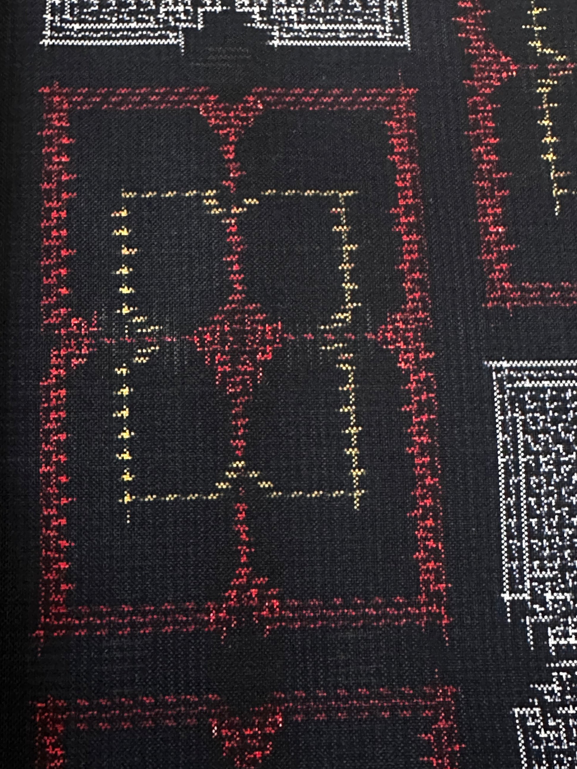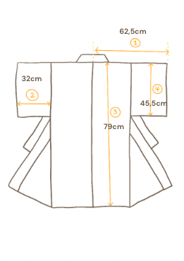 Țesătură: țesătura are o calitate distinctă, texturată , posibil tsumugi (mătase pongee) . Acest lucru îi conferă haori-ului o profunzime subtilă și un farmec natural, făcându-l atât elegant, cât și plin de caracter. Motivele pictate manual ale căptușelii interioare adaugă un strat suplimentar de artă, reflectând estetica tradițională japoneză.