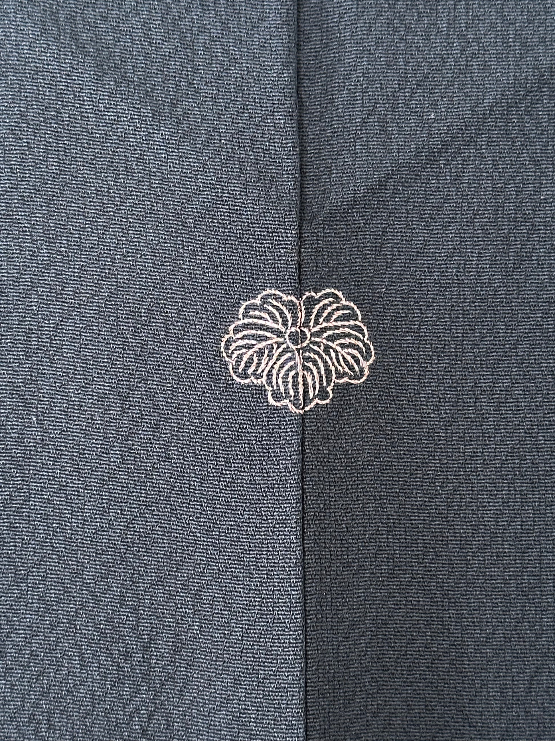 Condition: The kimono is in good condition. The fabric and dyeing are intact, and the family crest remains clear. There are no significant damages or fading, making this kimono an excellent choice for those seeking a well-preserved piece from the Showa or early Heisei period.