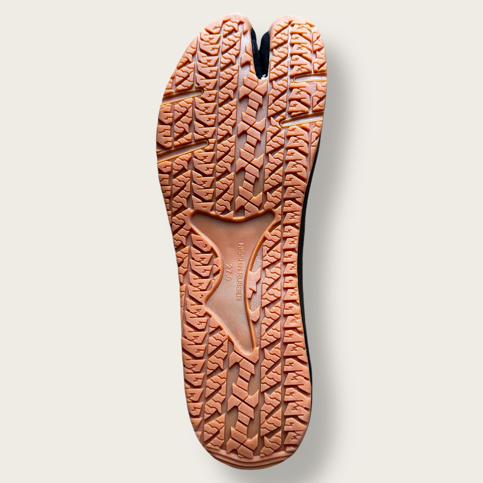 - Design: Pantofii tabi FUJIN au un design tradițional cu vârf despicat, aducând un omagiu încălțămintei clasice japoneze, în timp ce talpa modernă cu pernă de aer sporește confortul și funcționalitatea.
