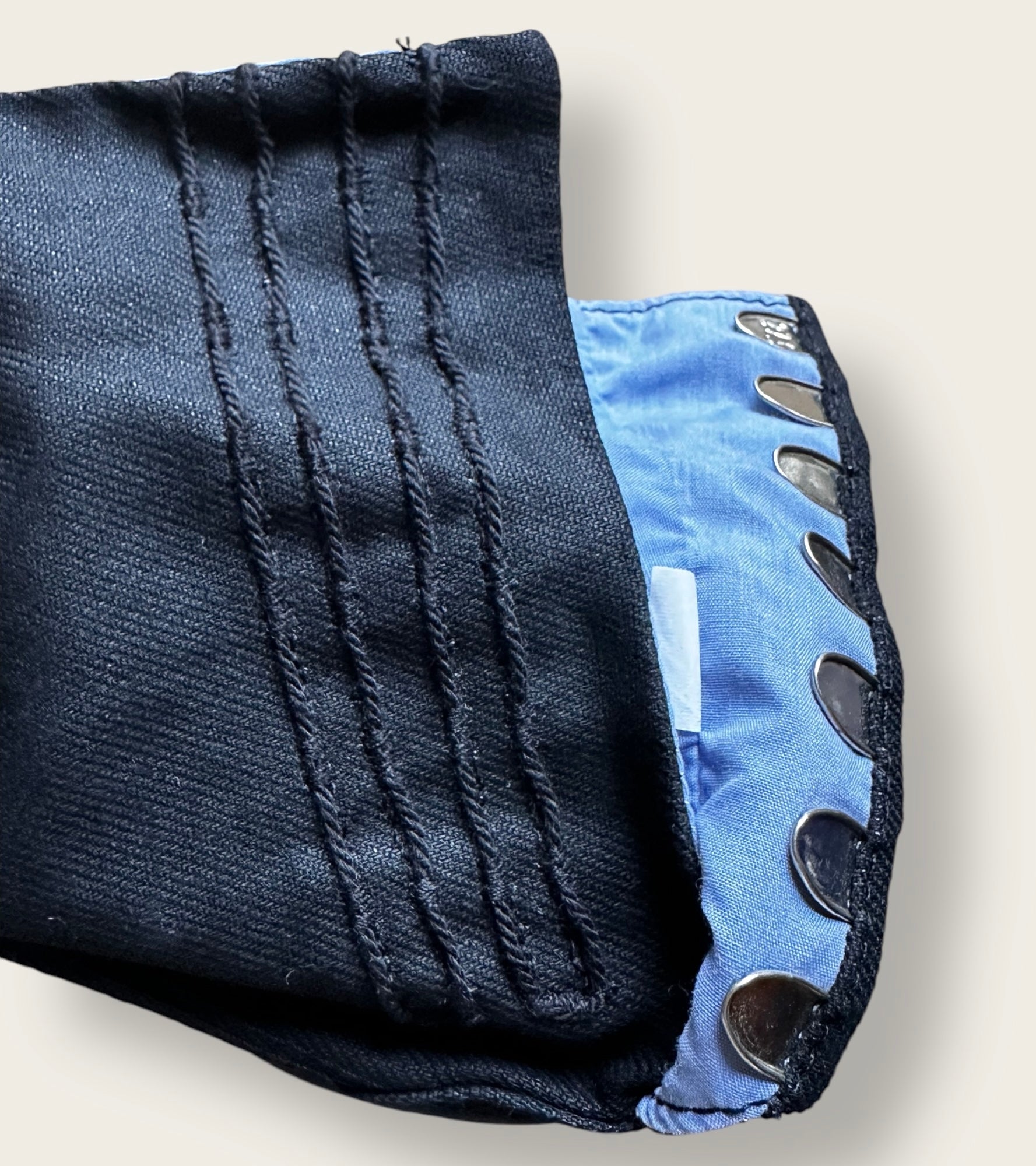 - Material: Fabricat cu un exterior elegant negru și o căptușeală moale, respirabilă din bumbac albastru deschis pentru un plus de confort și stil.