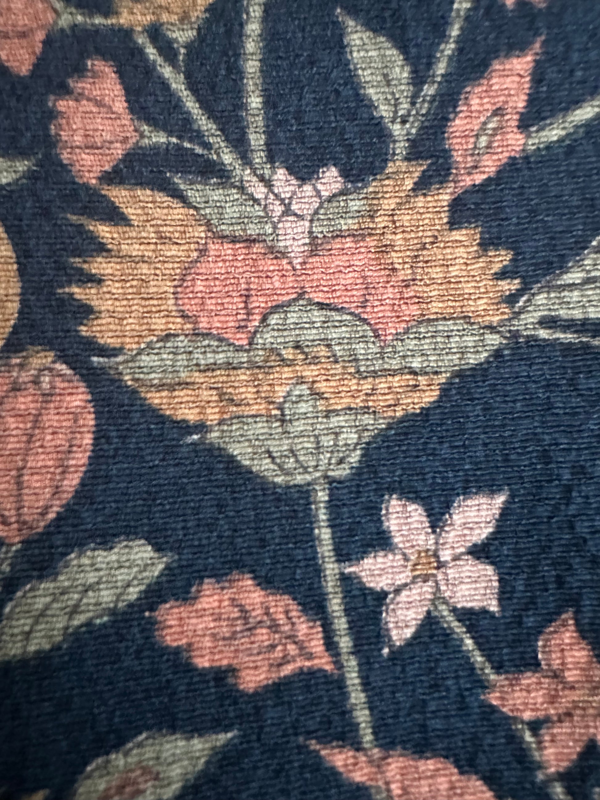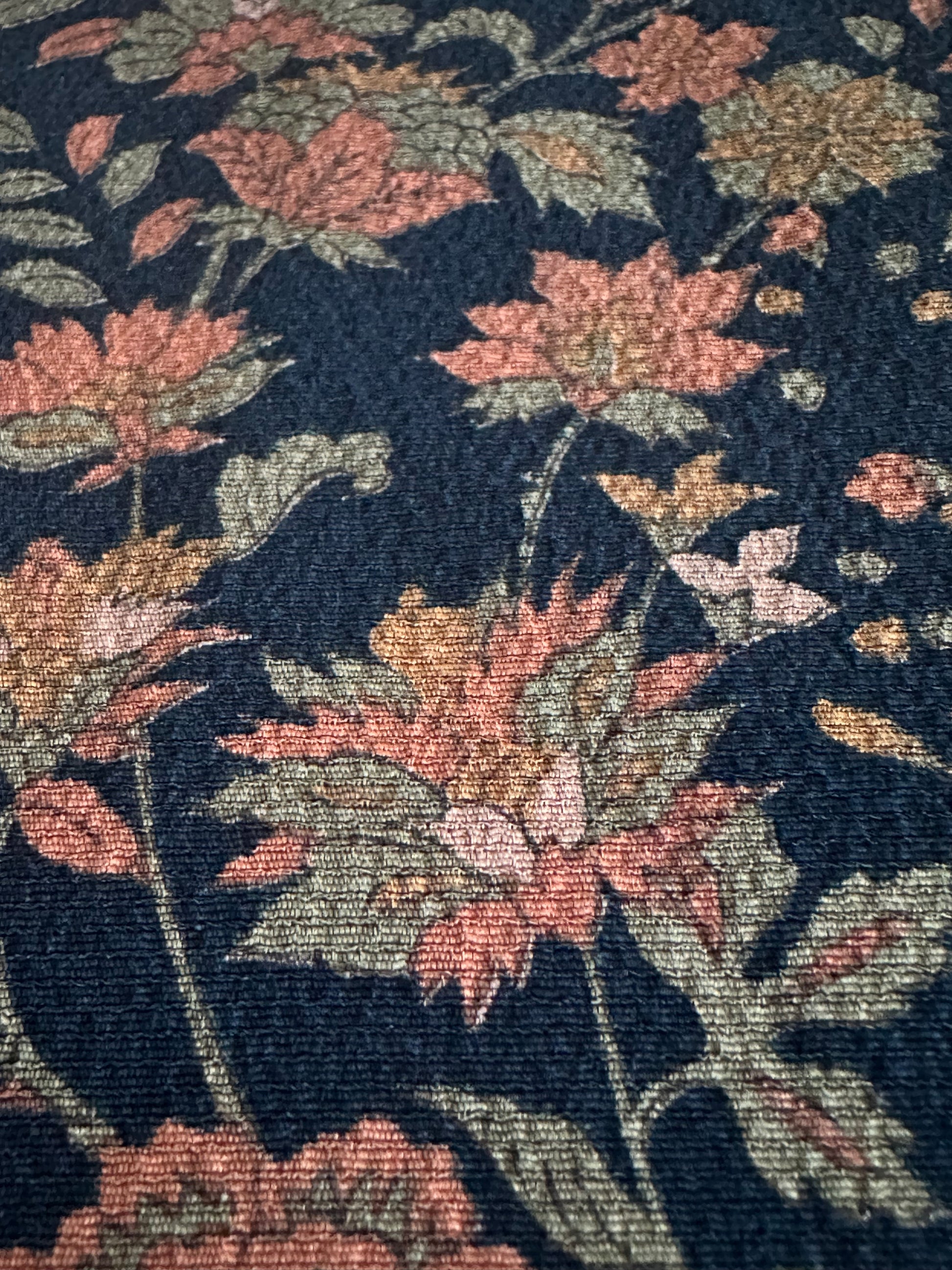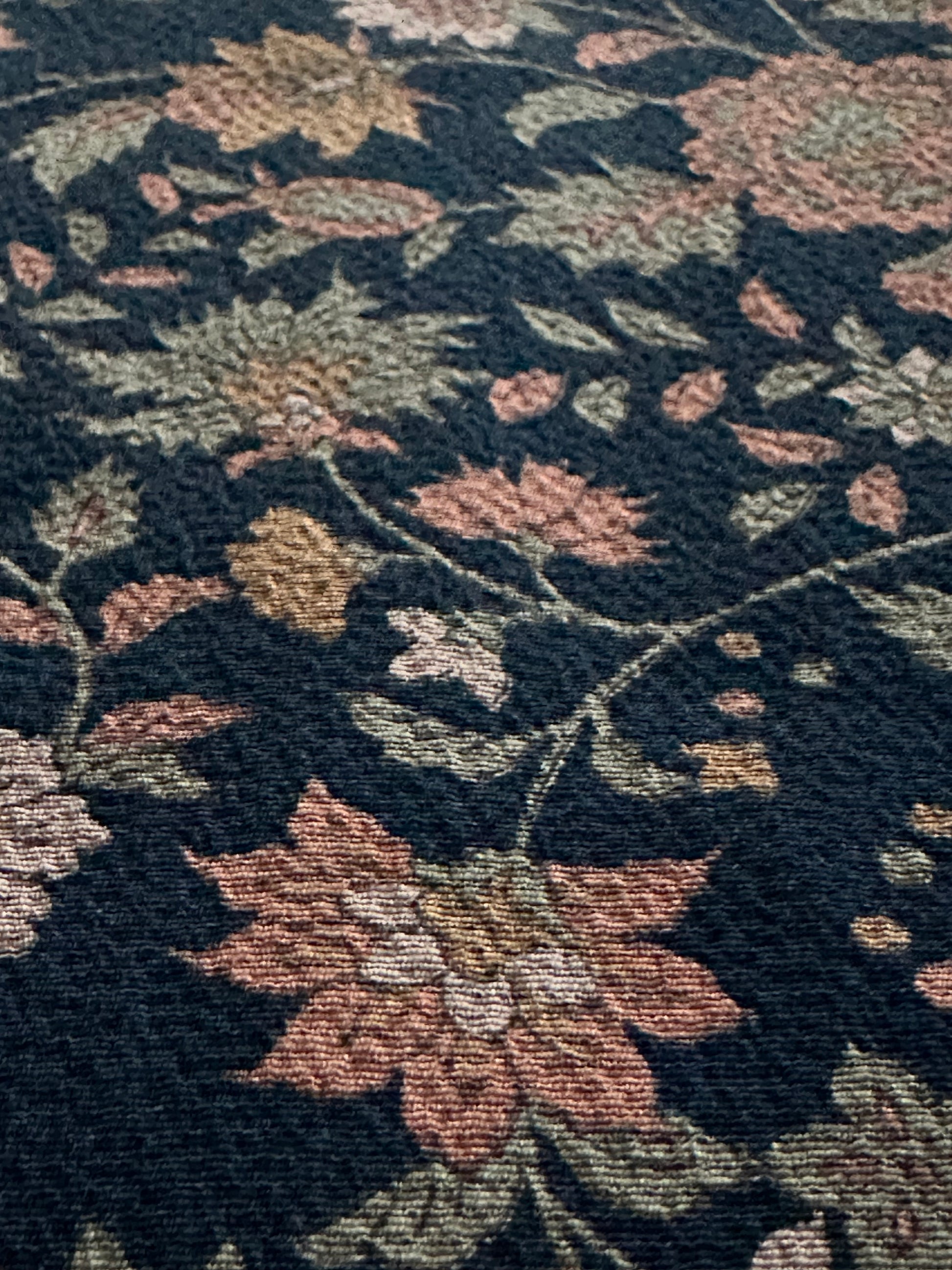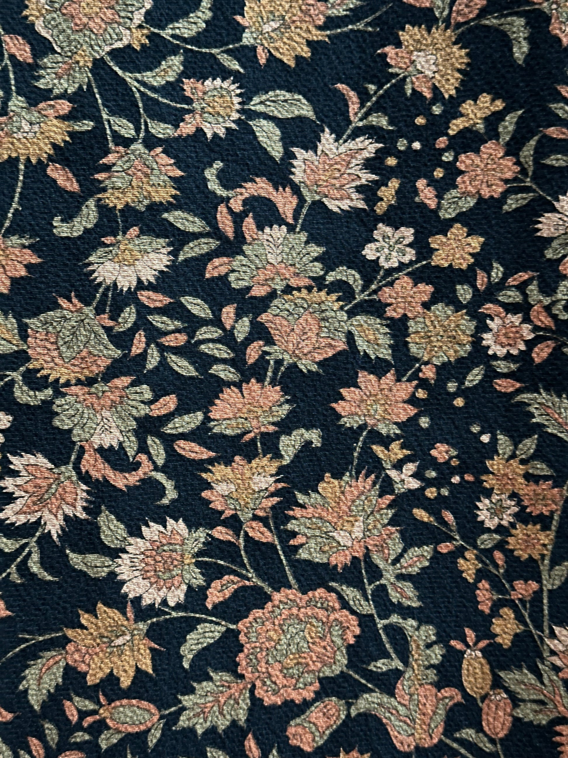 Kimono komon , această piesă este perfectă pentru ocazii casual până la semi-formale. Modelul floral integral îi conferă o estetică relaxată, dar rafinată, făcându-l un plus versatil pentru orice garderobă. Baza de indigo adâncă și florile maro creează o eleganță bogată, subestimată, potrivită pentru o varietate de setări.