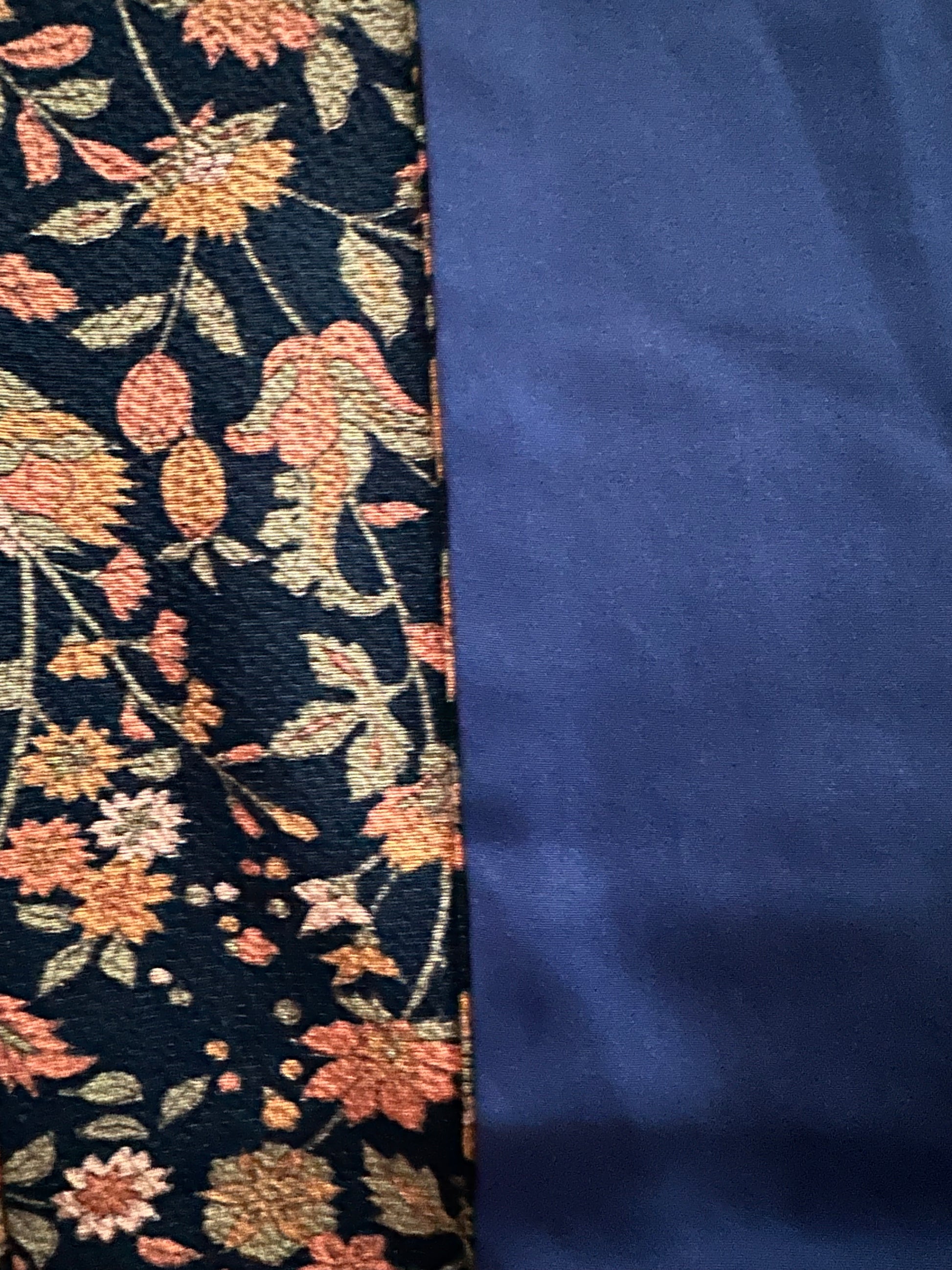 Acest kimono elegant komon are o bază albastru indigo intens, împodobită cu flori maro delicate care sunt răspândite uniform pe țesătură. Designul floral creează un contrast frumos cu fundalul albastru închis, oferind chimonoului un aspect sofisticat și atemporal. Combinația bogată de culori este atât izbitoare, cât și armonioasă, oferind un aspect unic, dar clasic. Căptușeala interioară este albastru închis, adăugând profunzime designului general și sporind eleganța generală a piesei.