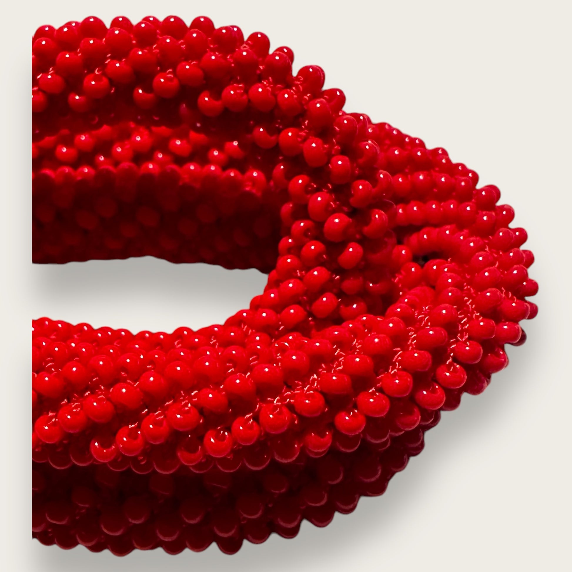 Obijime : Un șnur croșetat meticulos, împodobit cu mărgele mici, oferind o notă finală elegantă stilului obi.